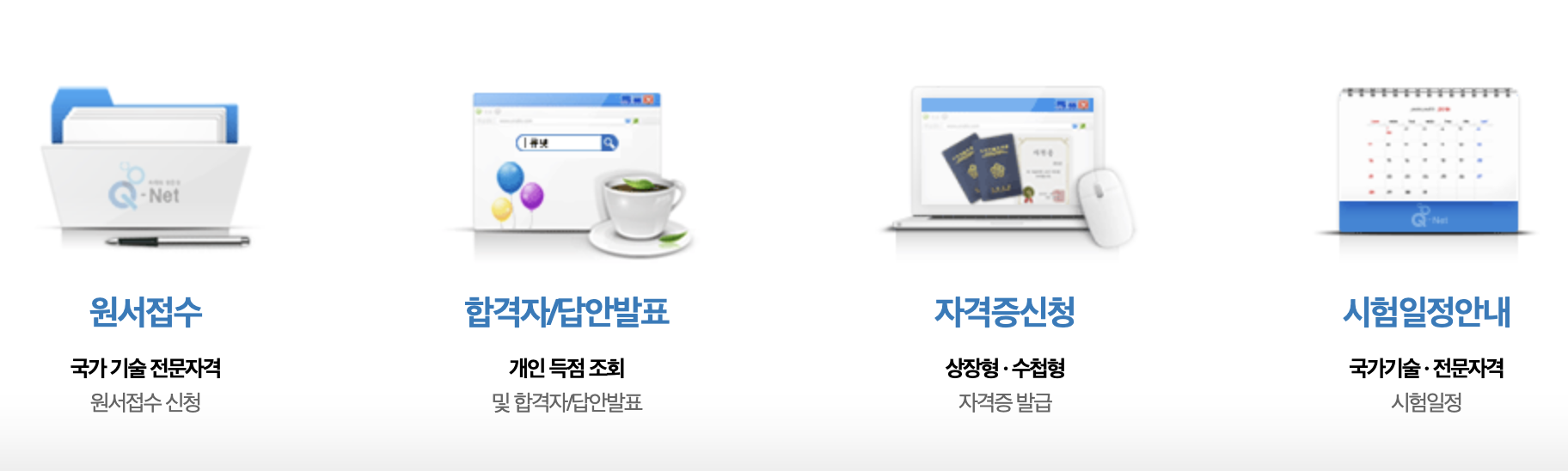 한국 산업 인력 공단에서 주최하는 시험은 <큐넷> 홈페이지 에서 원서 접수를 할 수 있습니다.