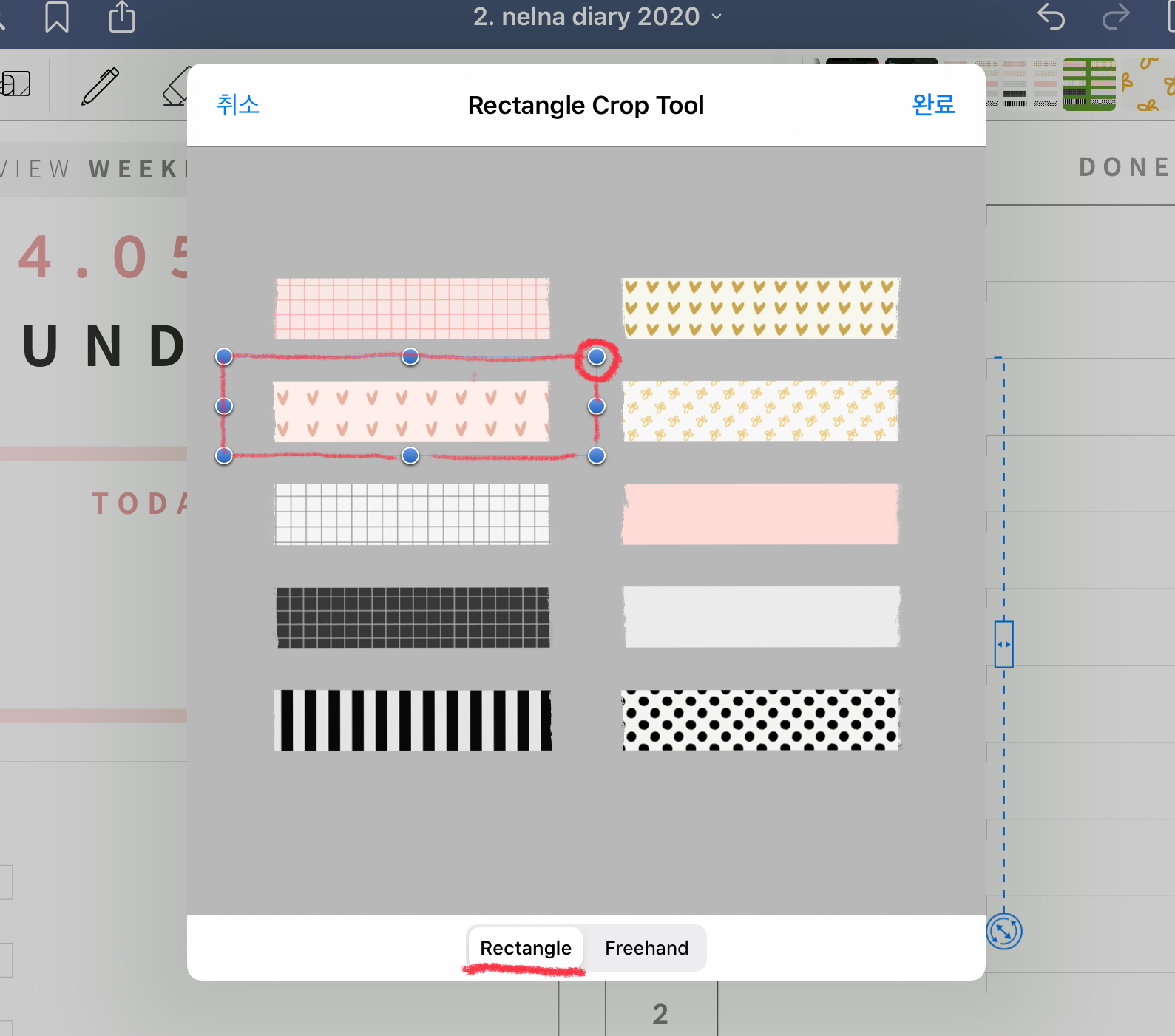 안녕하세요. 도란입니다. 오늘은 굿노트 다이어리에 사용할 수 있는 마스킹 테이프를 공유하려고 합니다.
