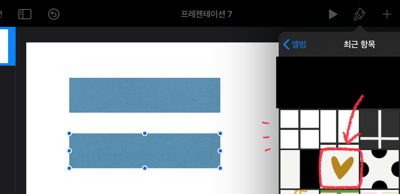 오늘은 키노트에서 마스킹 테이프 만드는 방법을 알아보았습니다. 여러분들도 패턴을 만들어 키노트에서 예쁘게 만들어 보세요.!