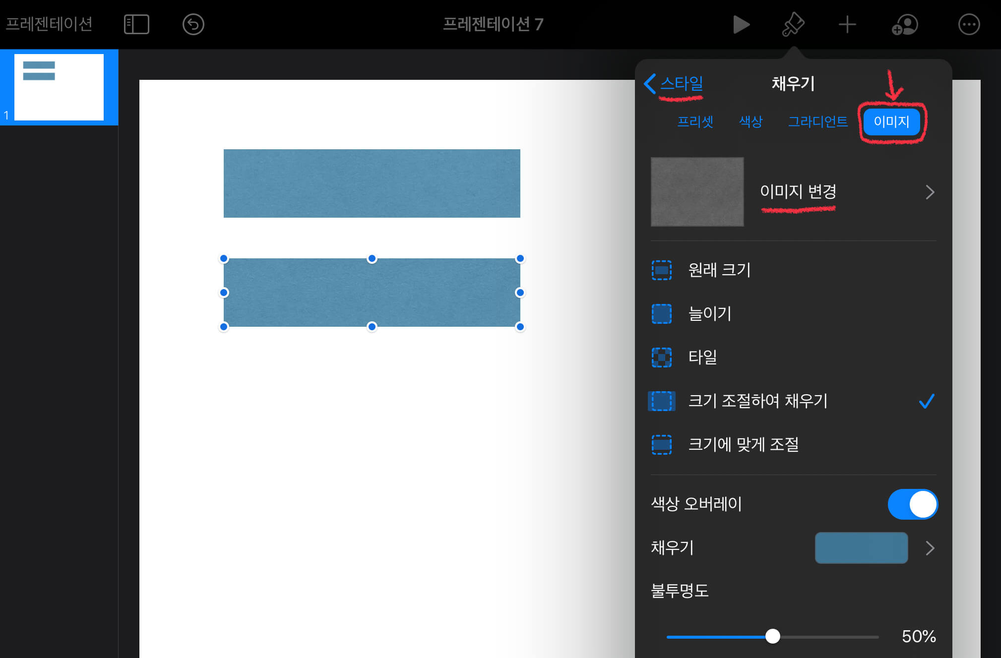 [붓 아이콘]-[스타일]-[이미지]-[이미지 변경] 을 눌러줍니다.