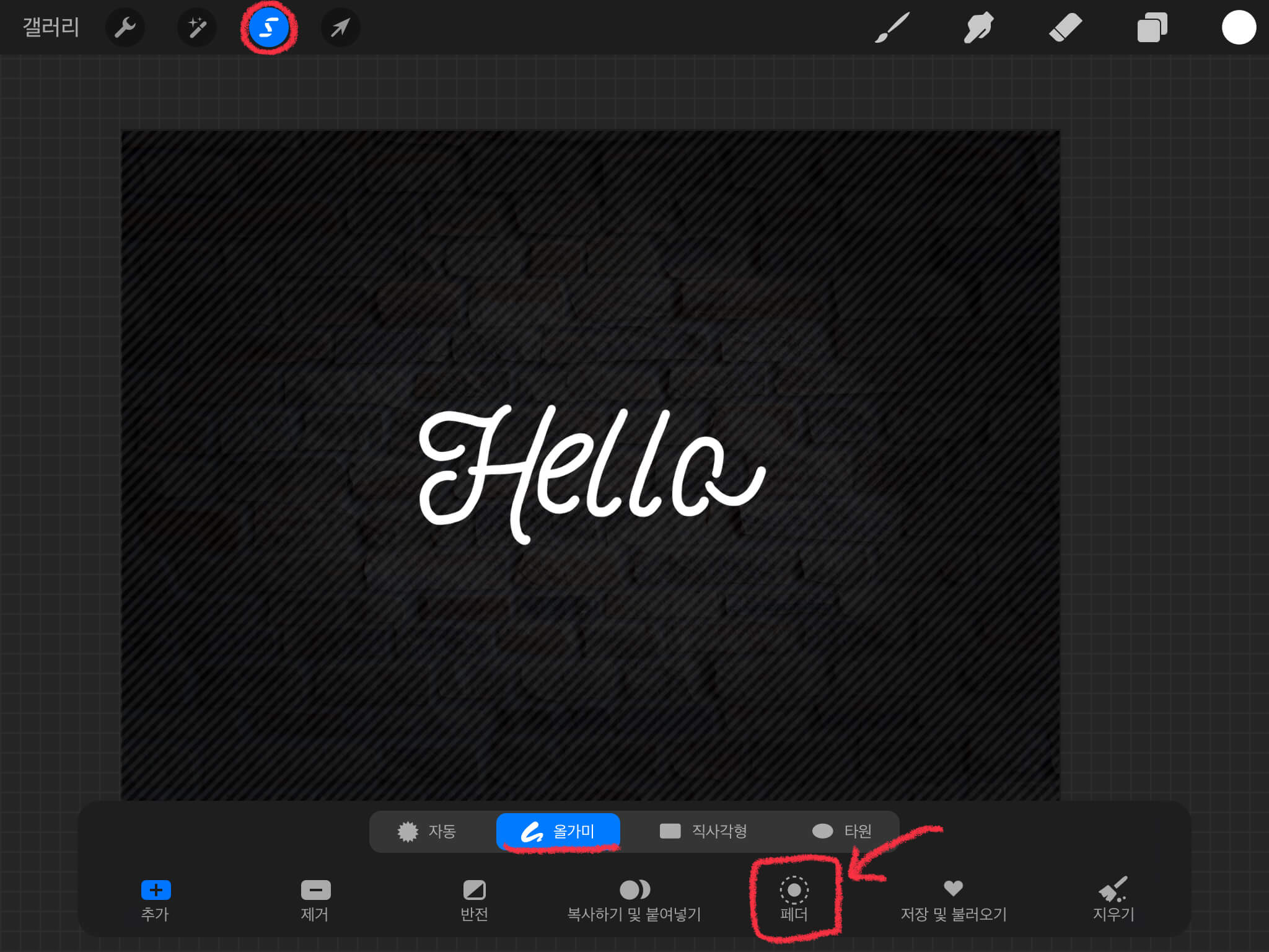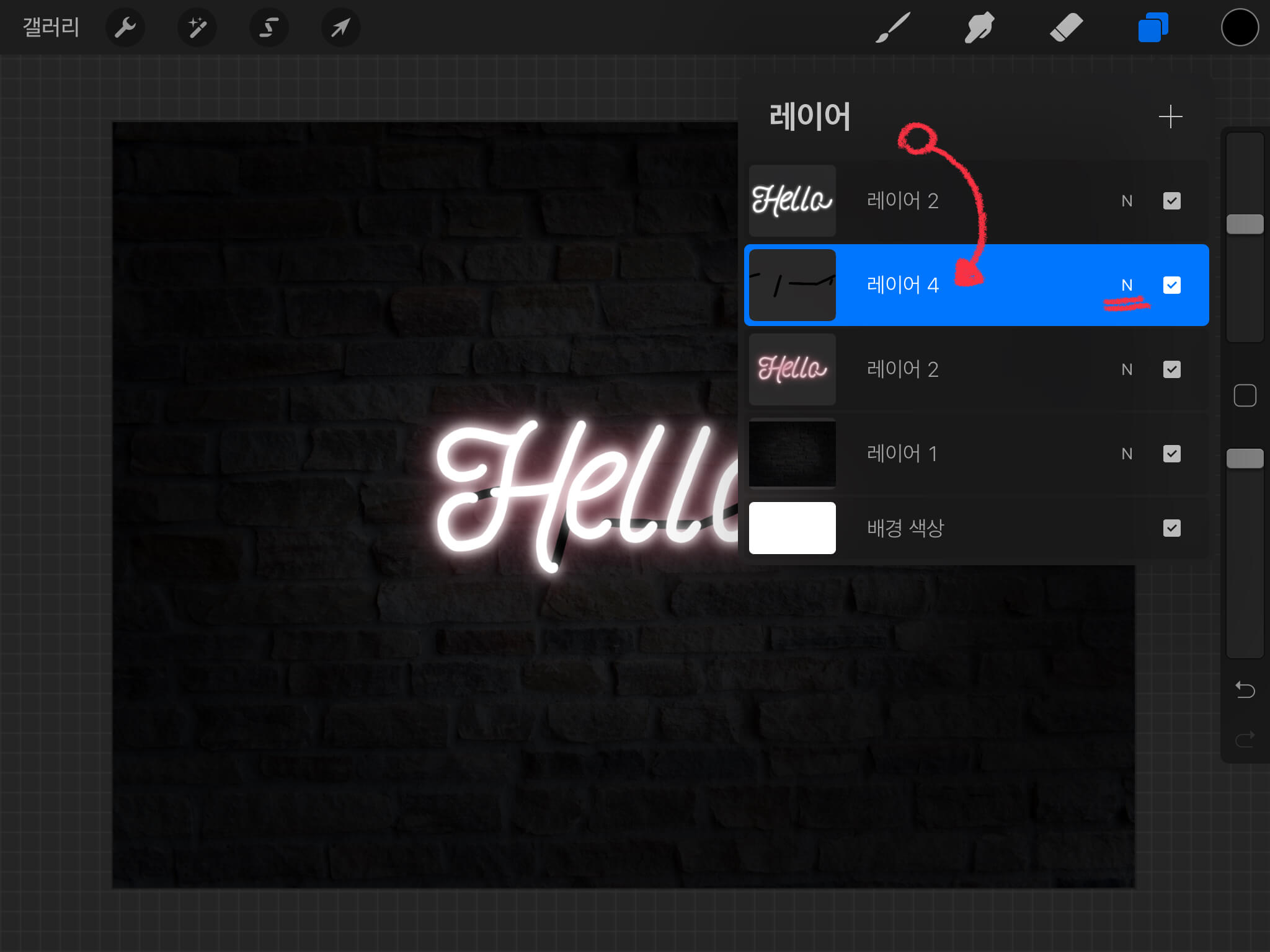 네온으로 만들어 줄 글씨 혹은 그림을 그려줍니다. 저는 hello라는 글씨를 적어주었습니다.