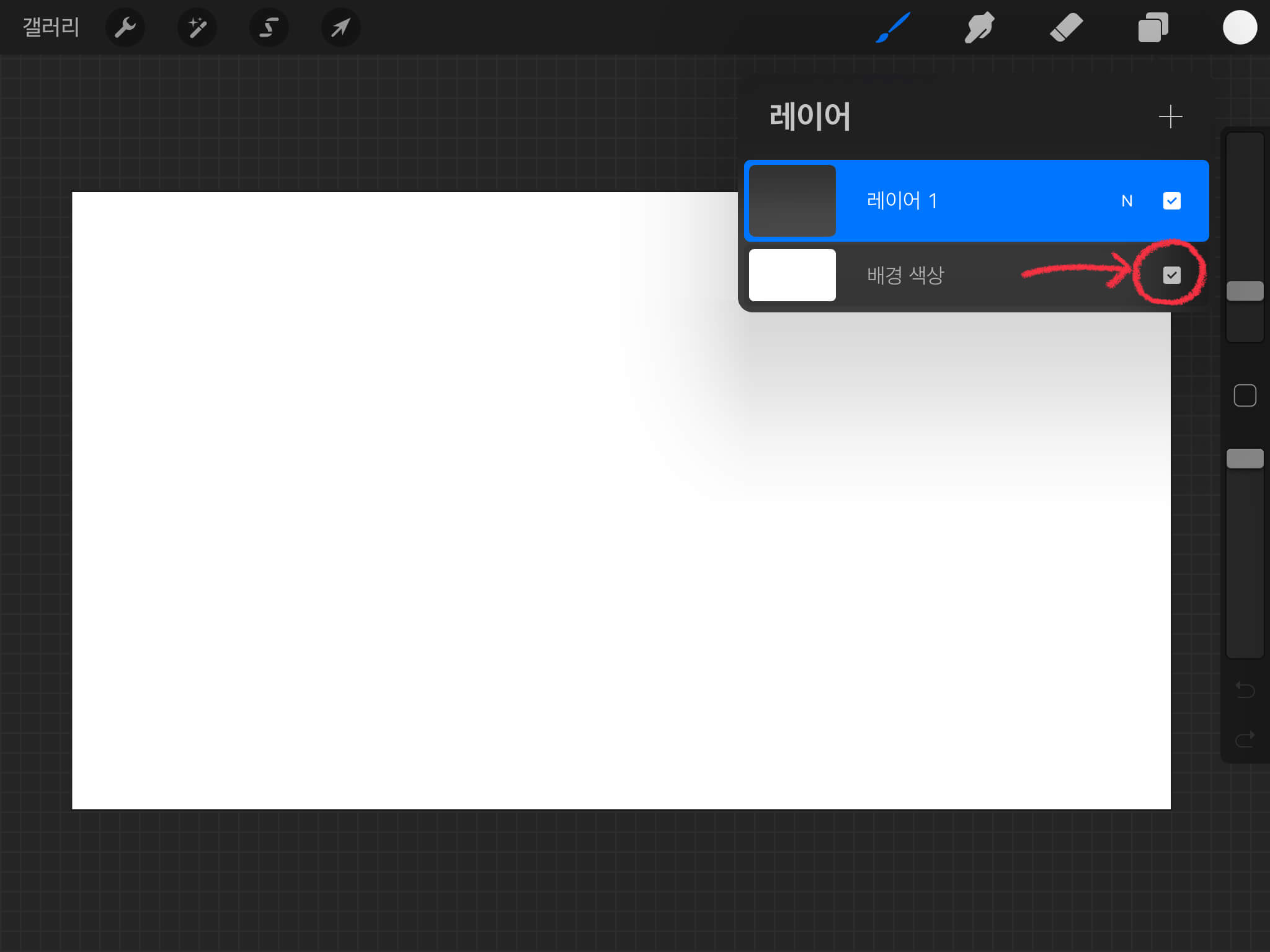 새로운 캔버스가 열렸네요. 이제 [레이어] 버튼을 눌러 배경 색상에 체크를 없애줍니다