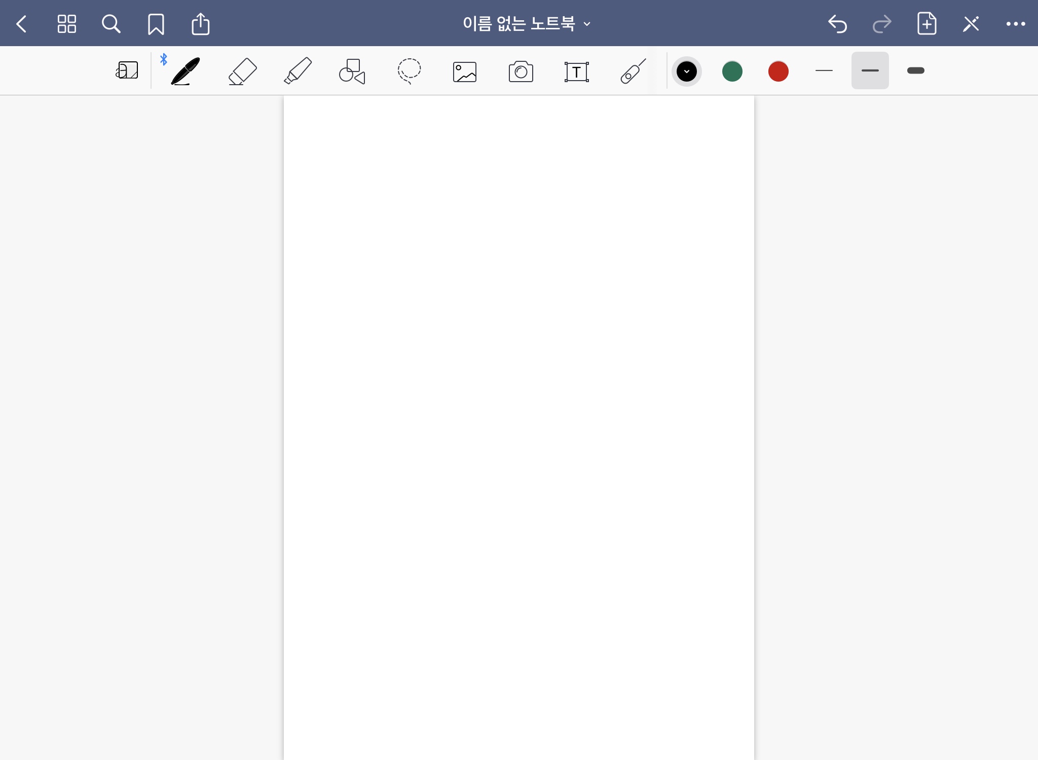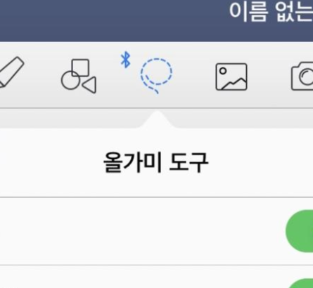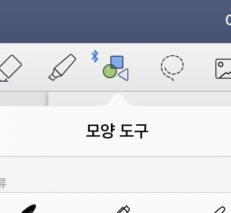 파란색 상단에 있는 기능은 나중에 설명하도록 하고, 우선 필기에 직접적으로 영향을 주는 9가지의 기본 도구들에 대해서 알아보겠습니다.