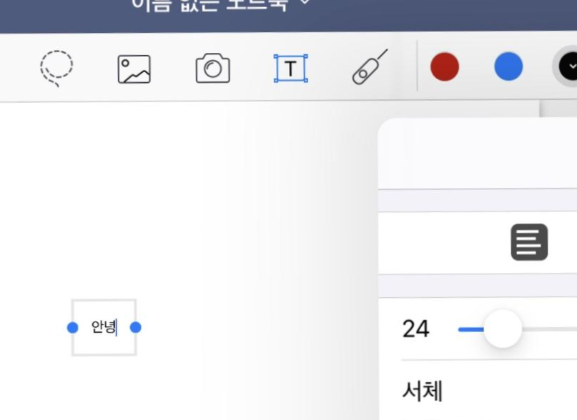 굿노트는 필기 어플이지만, 키보드를 이용한 텍스트를 적을 수 있습니다. 개인적으로는 주로 손글씨로 작성하기 어려운 영문 필기체를 입력할 때 사용하는 편입니다. 이 외에도 예쁜 무료 폰트를 다운로드하여 추가로 폰트를 설치할 수 있습니다.