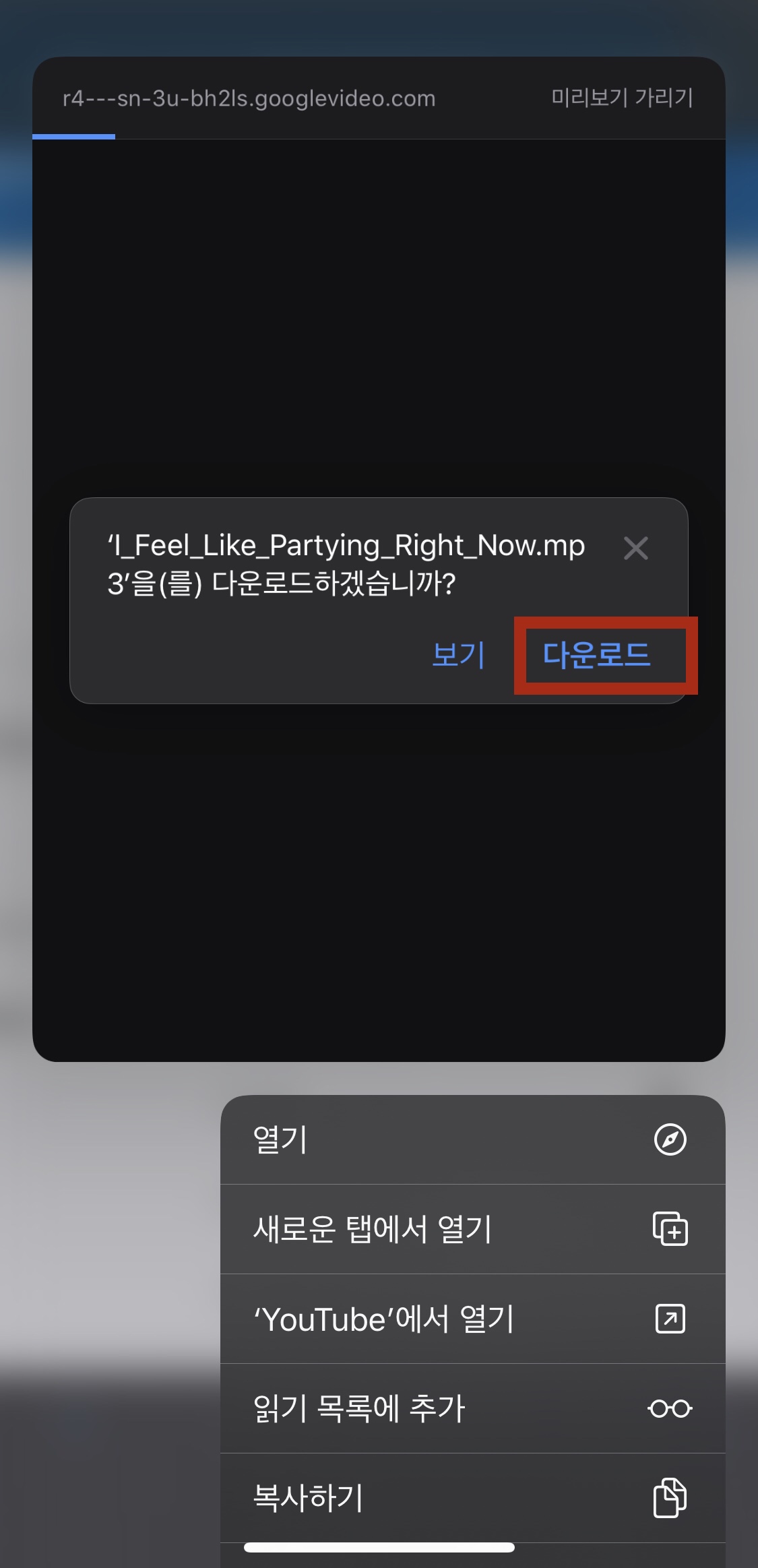 다운로드 팝업창이 뜨면 [다운로드]를 눌러준 뒤, [기타]를 눌러줍니다.