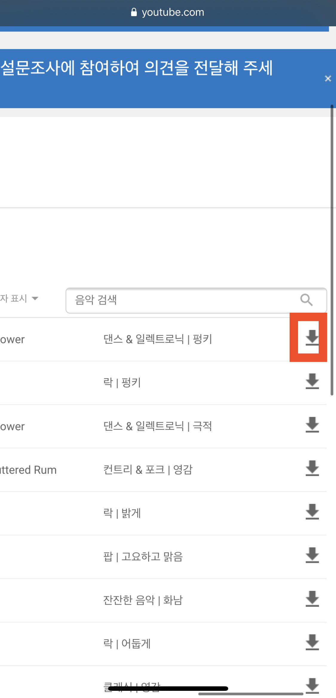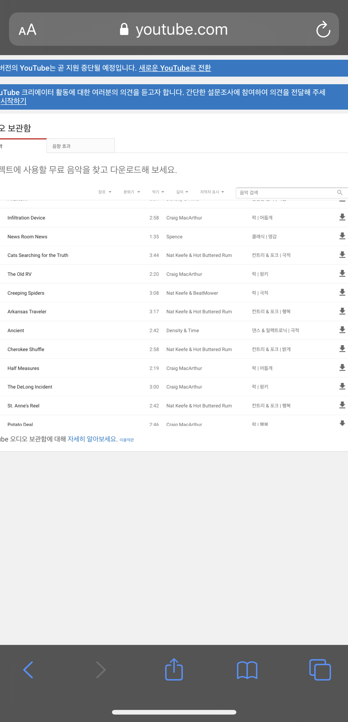 이때 저는 안전하게 무료로 사용할 수 있는 음악 사이트를 이용하겠습니다. 바로 [유튜브 오디오라이브러리] 입니다. (아이폰 사파리 safari로 링크에 접속하세요)