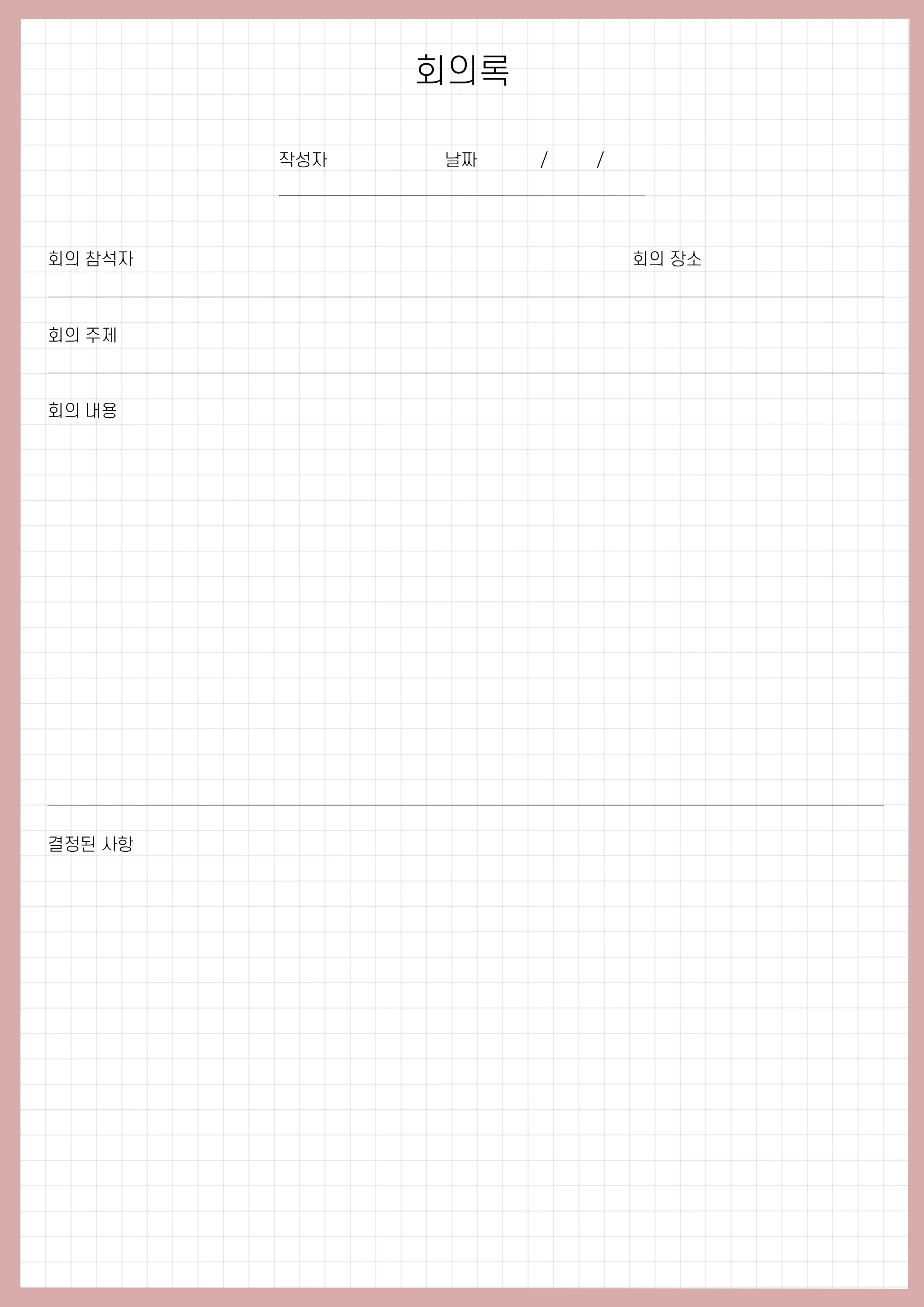 안녕하세요 도란입니다. 오늘은 굿노트 회의록 서식을 가지고 왔어요. 바탕은 모눈종이로 만들었습니다.