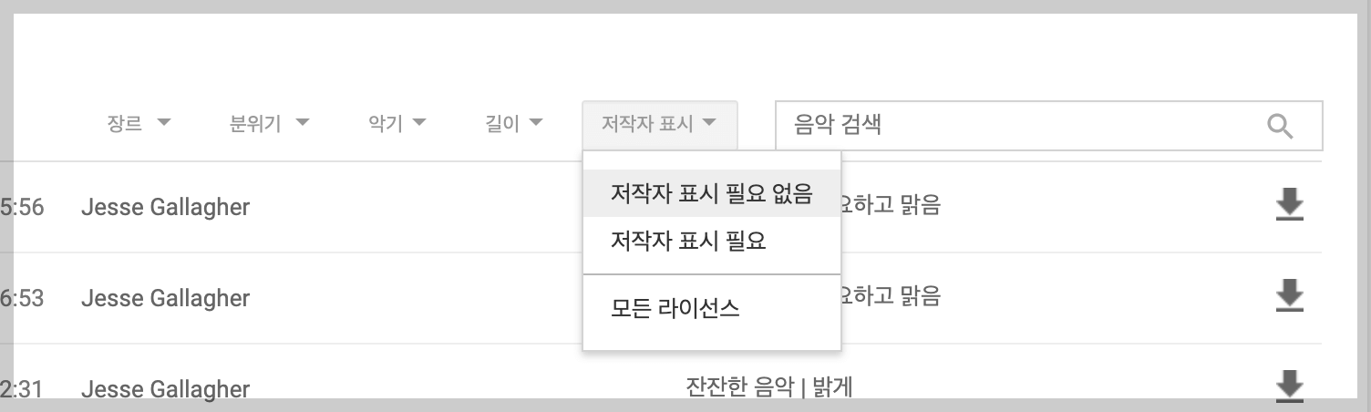 오디오 라이브러리에 있는 음원은 모두 무료로 사용 가능한 음원입니다. 하지만주의해야 할 사항이 있습니다. 바로 저작자 표시 입니다.