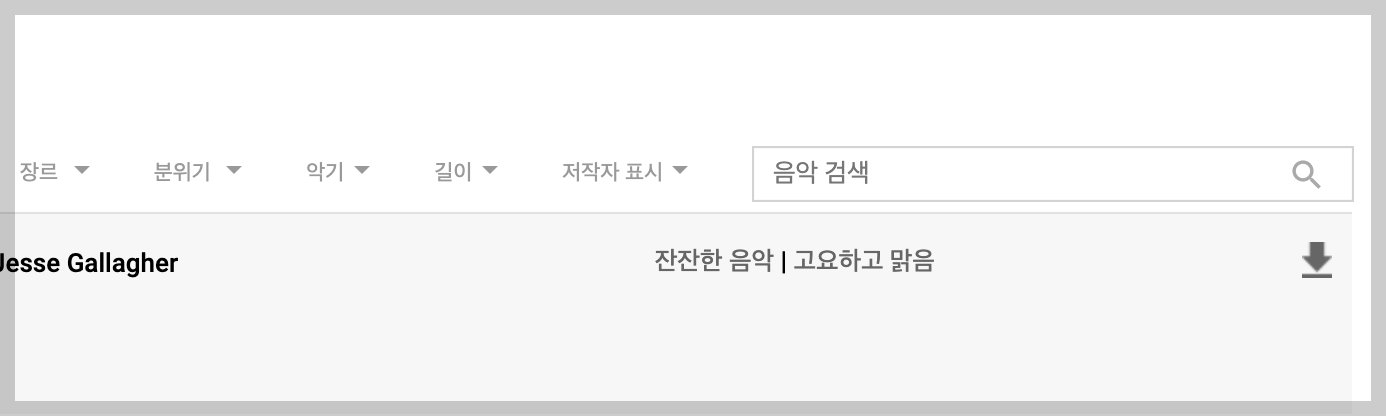 페이지에서 바로 음원을 재생하여 들어볼 수 있습니다. 마음에 들 경우에는 오른쪽에 있는 다운로드 버튼을 누른 뒤 다운로드합니다.