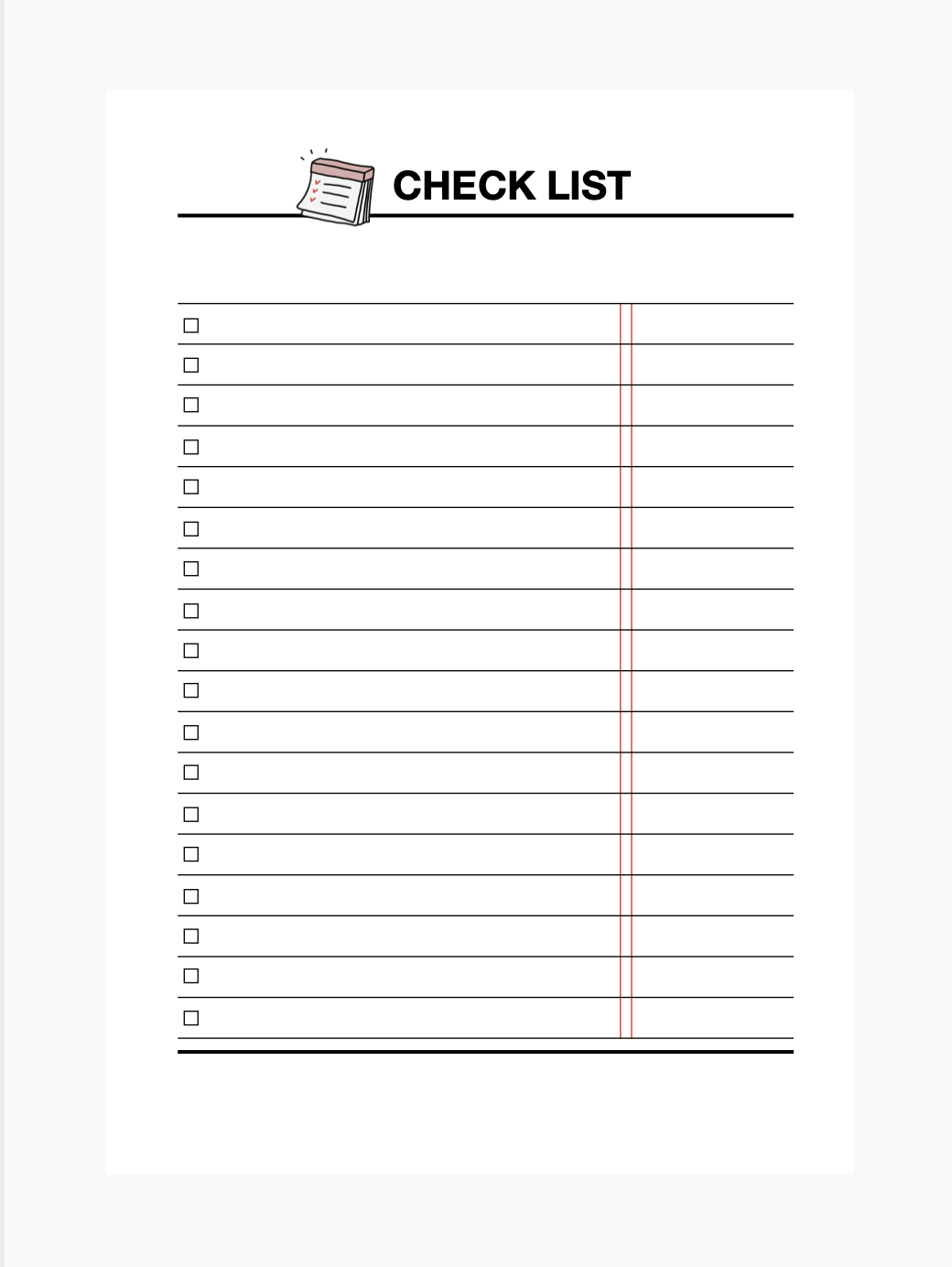 체크리스트는 다양하게 사용할 수 있습니다. 상단 빈칸에 주제를 적고 체크리스트를 작성해주세요. 저는 주로 하루에 해야할 일들을 적어놓습니다.
