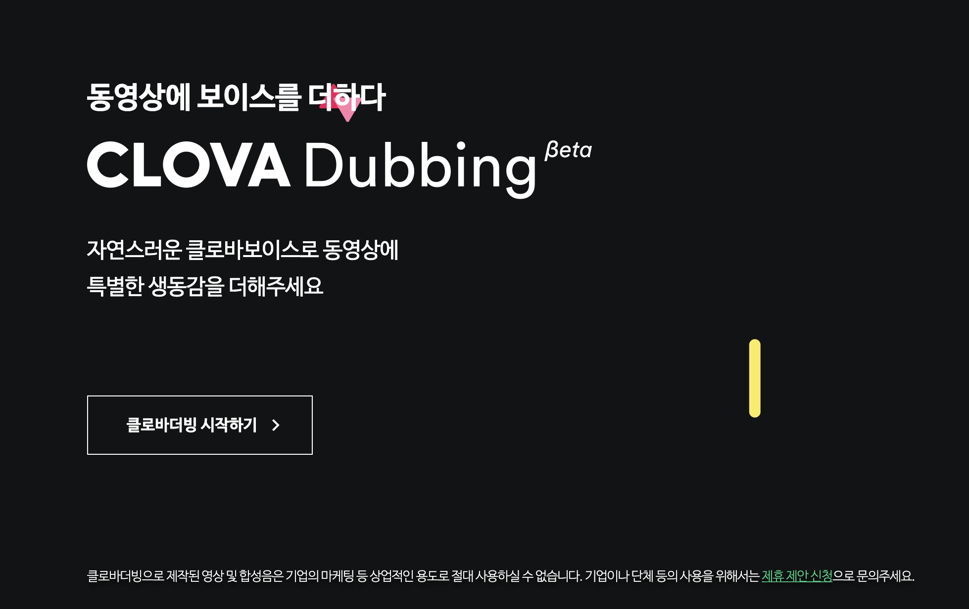 아래로 들어가면 더빙 프로그램 네이버 클로바 AI 목소리가 어떤지 들어보실 수 있습니다.