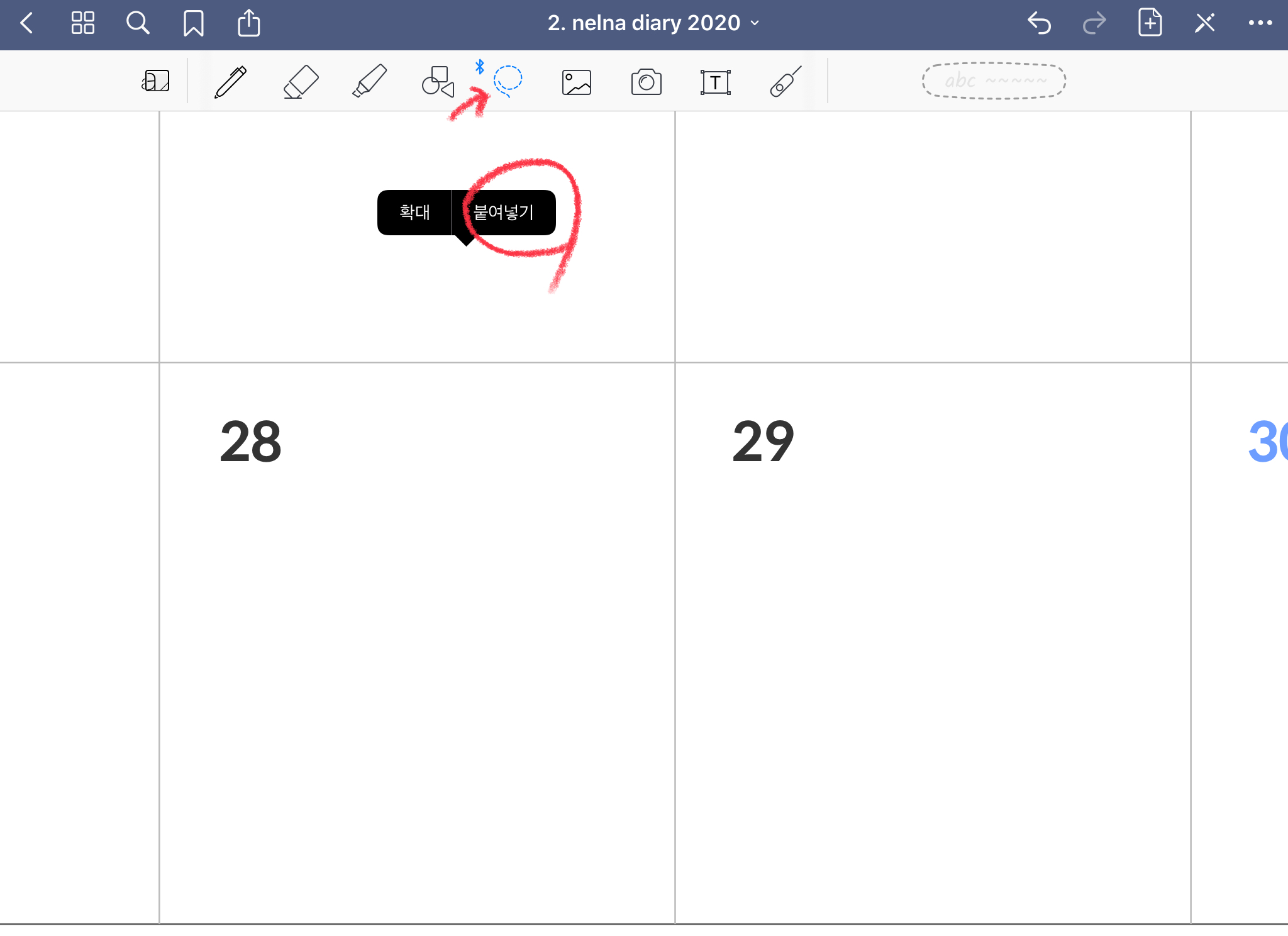 이제 굿노트 어플을 실행합니다. 자동 복사가 되었기 때문에 바로 [붙여 넣기] 해줍니다. 그리고 사이즈를 조절해줍니다.