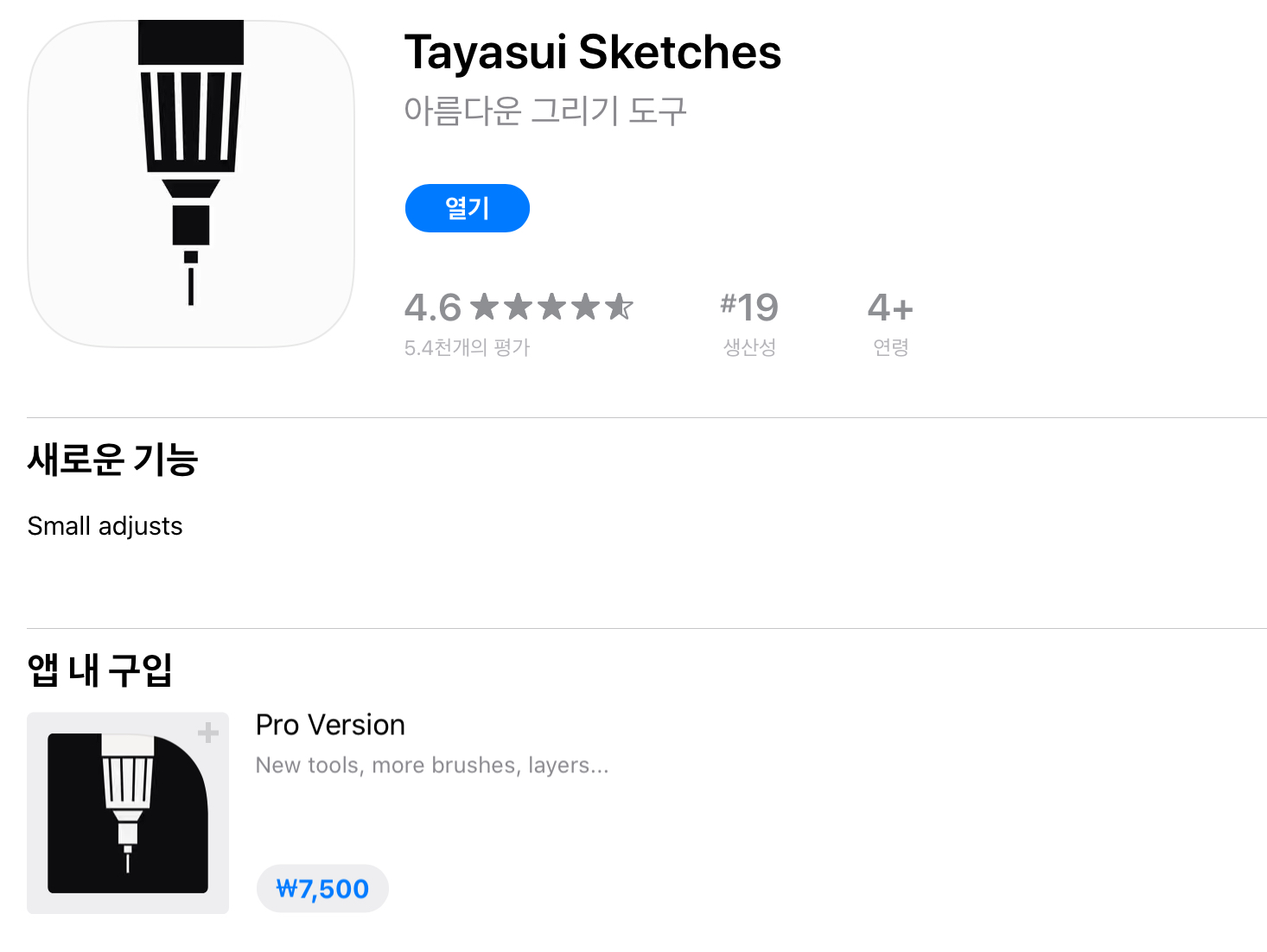 무료 버전으로 간단하게 사용 가능한 드로잉 어플입니다. (스케치스 유료 가격 7,500원) 저는 아직까지 무료로 크게 불편함 없이 사용하고 있습니다.