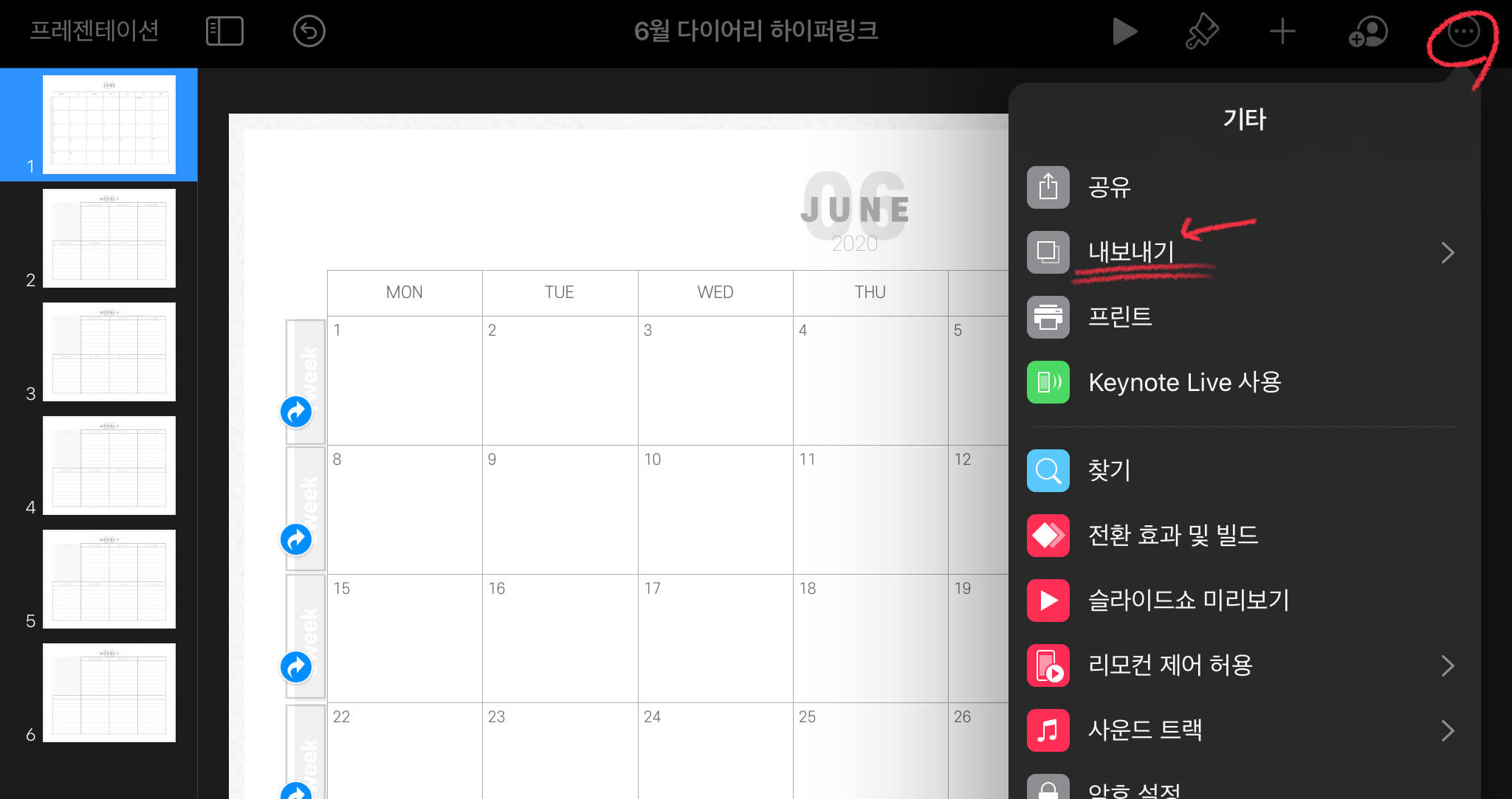 내보내기를 해줍니다. 오른쪽 상단[ . . . ]을 선택한 뒤, [내보내기]를 누릅니다.