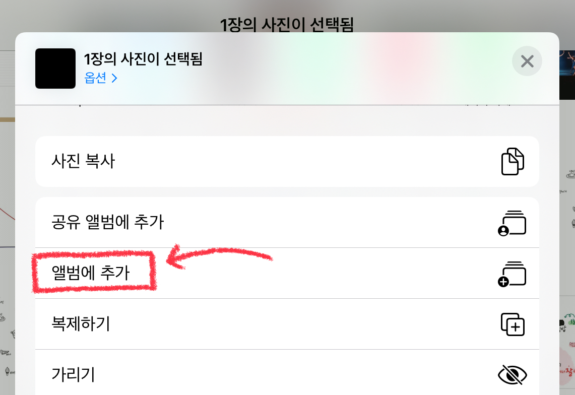 그리고 아래와 같은 화면이 나오면 [앨범에 추가] 버튼을 선택합니다.