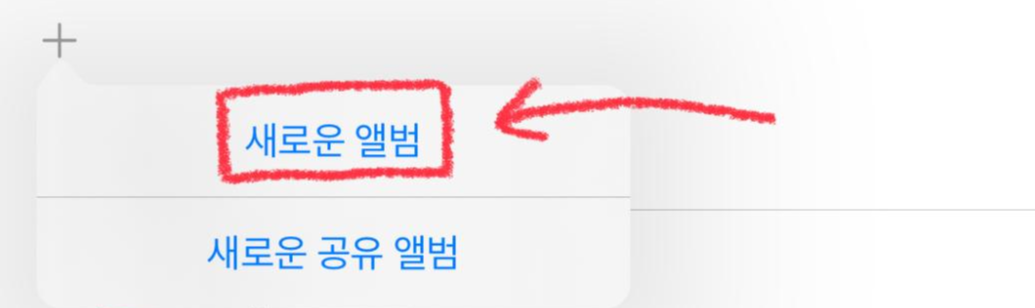 새로운 나의 앨범을 만들어 주어야 합니다. 하단의 [앨범]을 누른 뒤 왼쪽 상단의 [+]버튼을 눌러주세요.