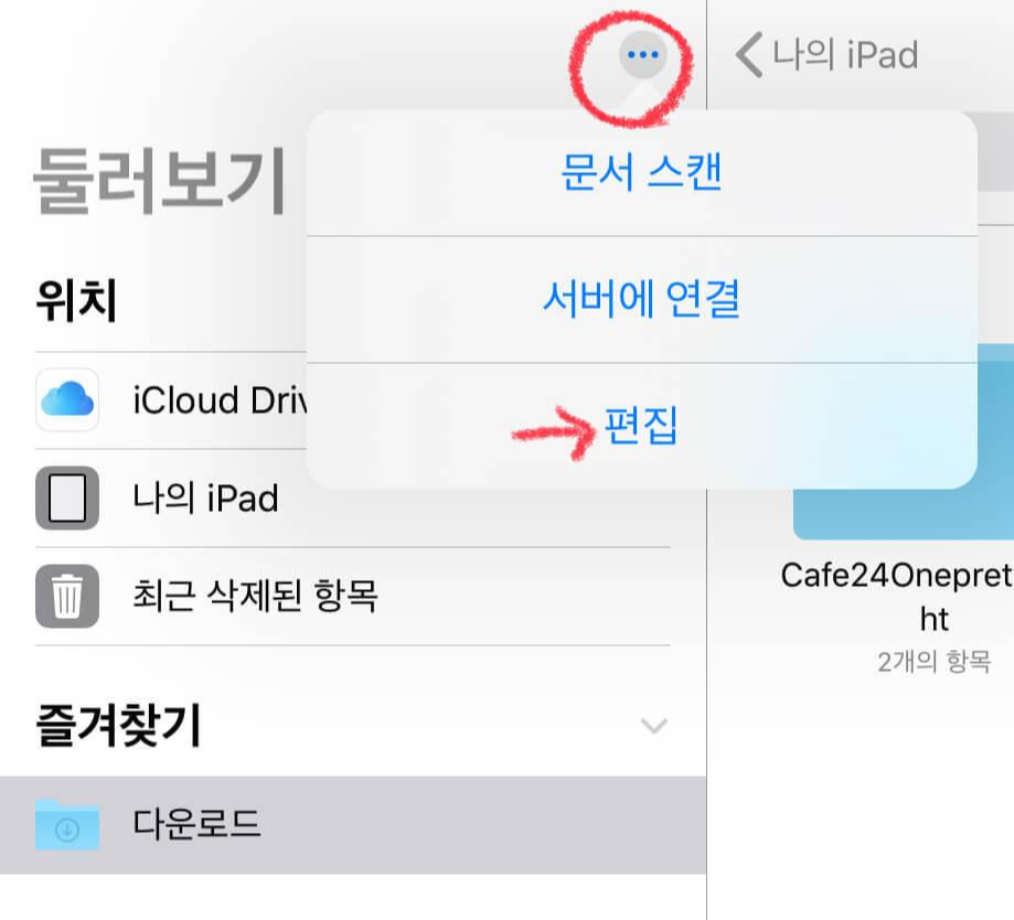 아래와 같이 점 세 개 버튼을 클릭합니다. 그리고 [편집] 버튼을 눌러줍니다.