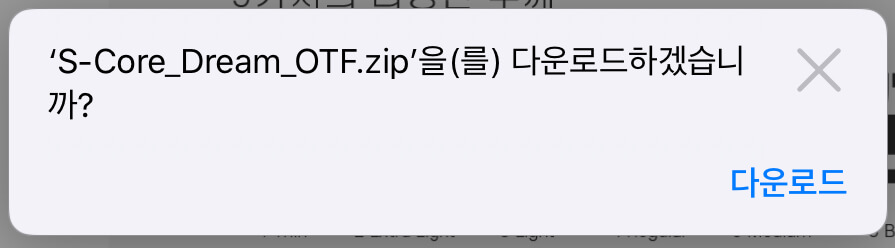 이와 같이 다운로드 항목에 에스코어드림 OTF 파일이 들어와 있습니다. OTF 파일은 애플 제품에서 사용할 수 있는 폰트 확장자입니다.