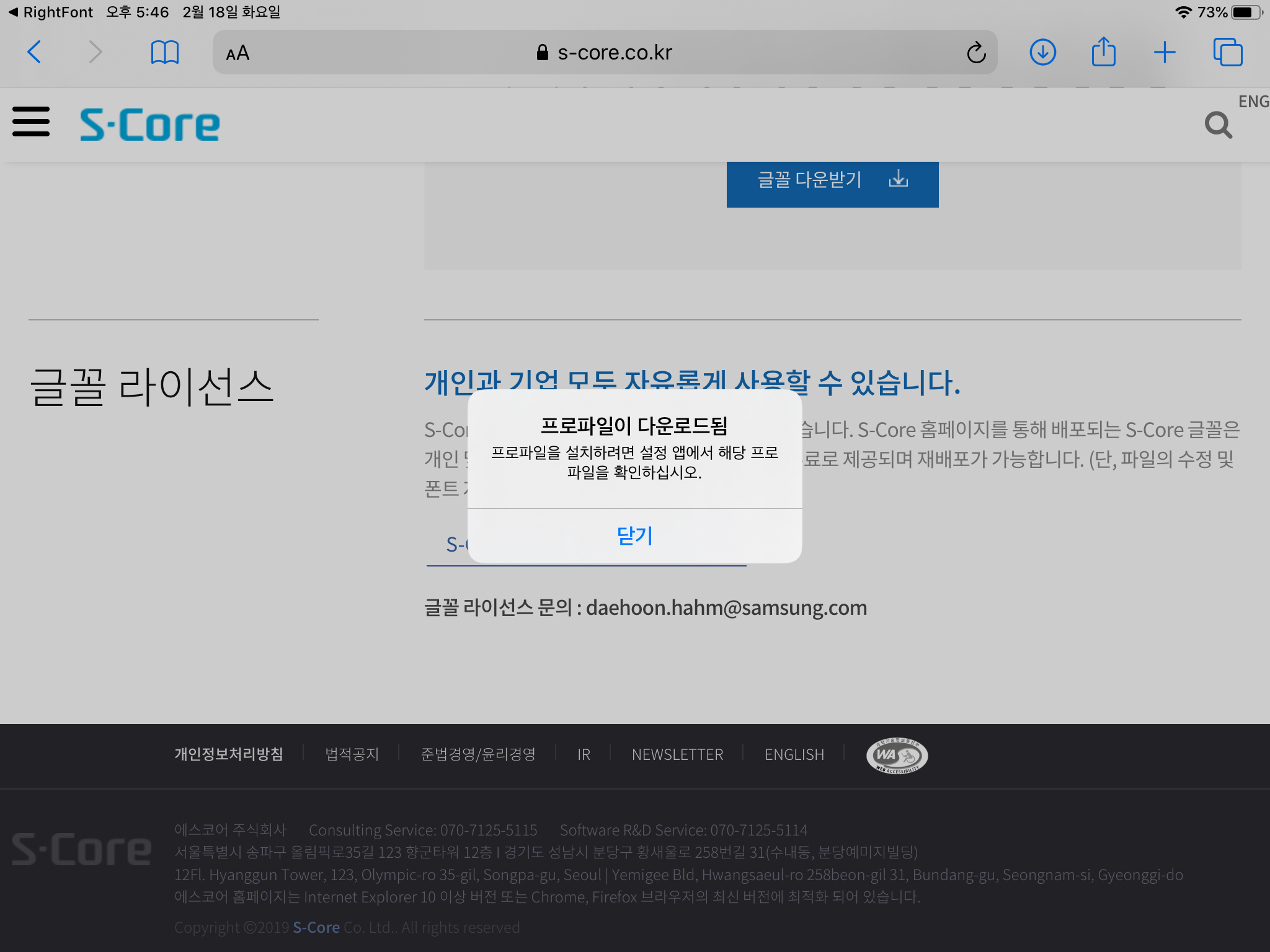 바로 이 항목을 설치해주면 아이패드 폰트 설치가 완료됩니다.