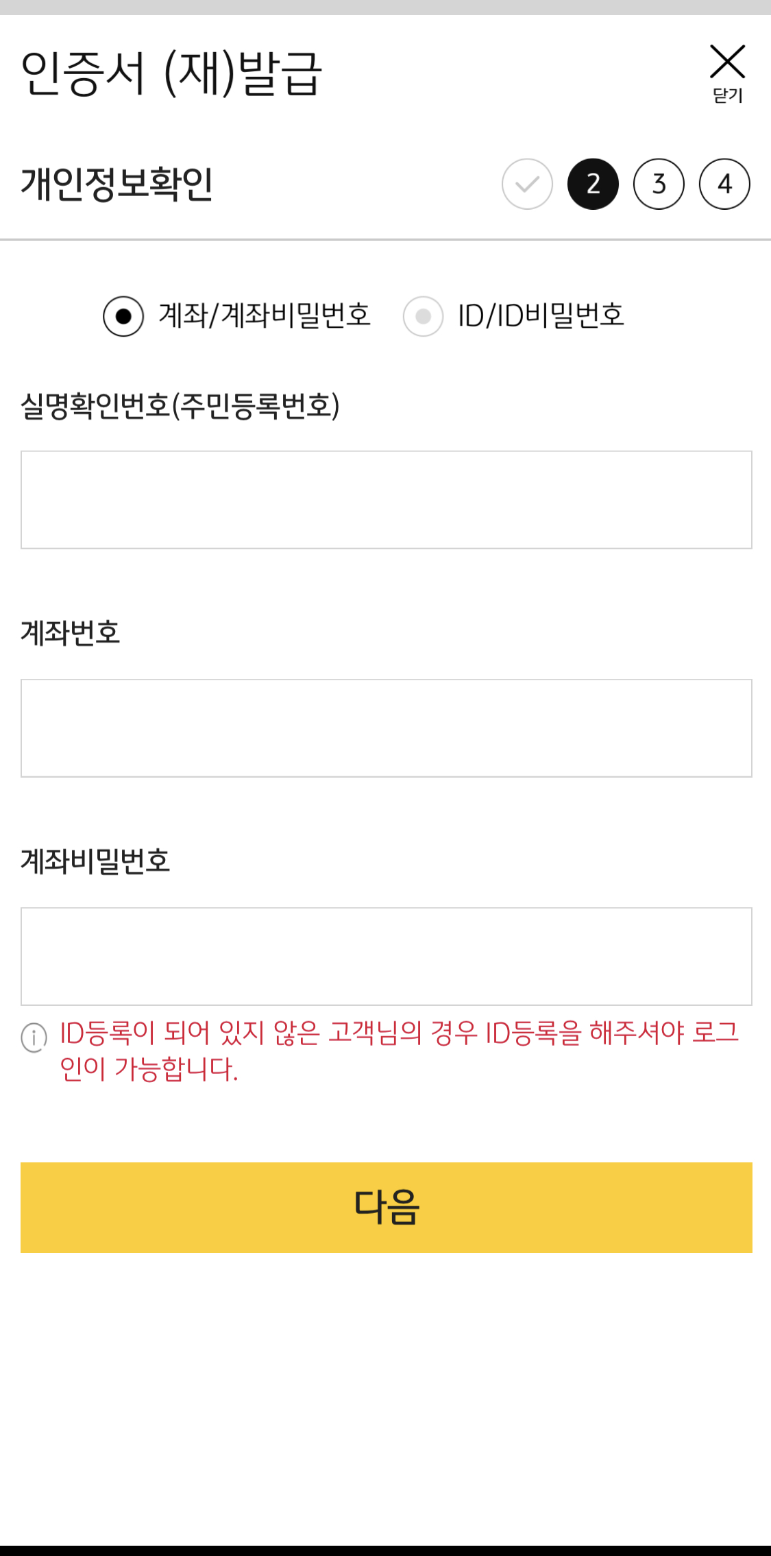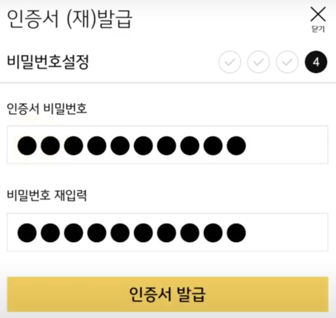공인인증서의 비밀번호를 설정해줍니다. (계좌 비밀번호와는 다르답니다.)