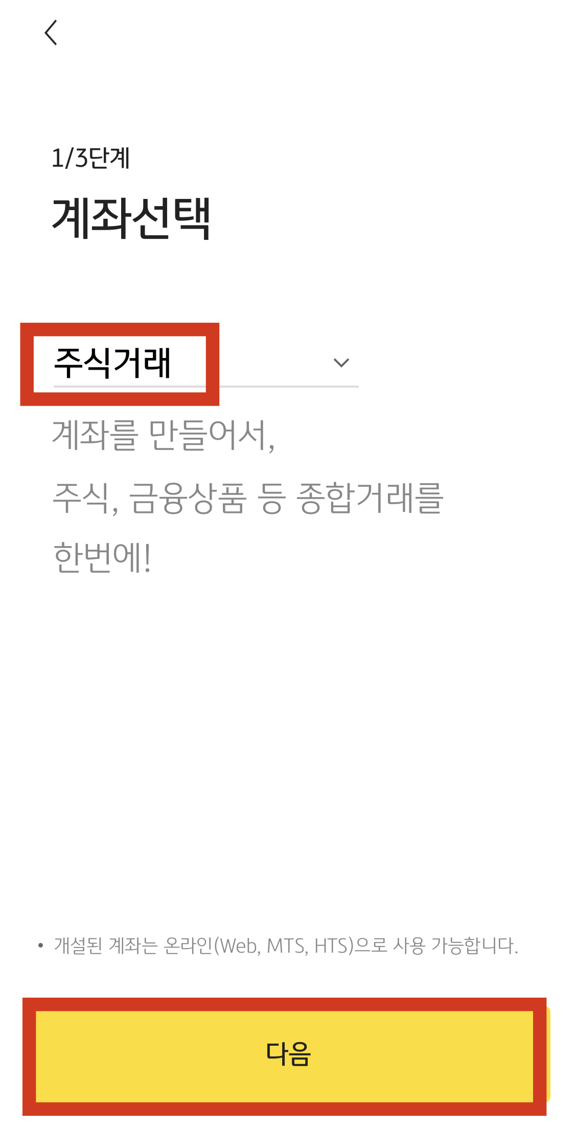 계좌 선택을 할때 주식거래 + CMA 함께 선택하는 것을 추천합니다 :) 나중에 CMA 계좌를 사용하게 될 수도 있으니까요.