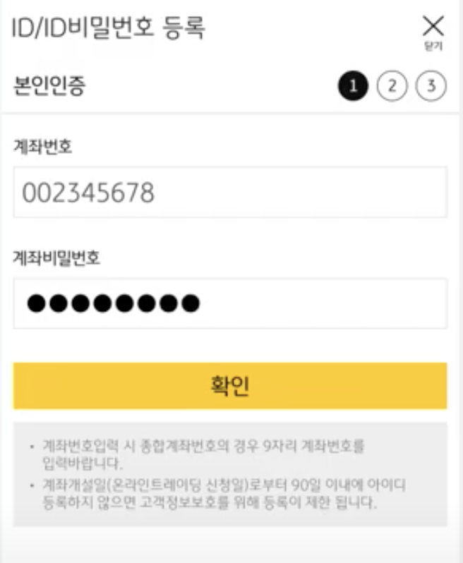 1단계에서 마지막에 메모해두었던 본인의 주식 계좌번호를 적어주세요. 함께 설정해두었던 계좌 비밀번호도 적어주세요.