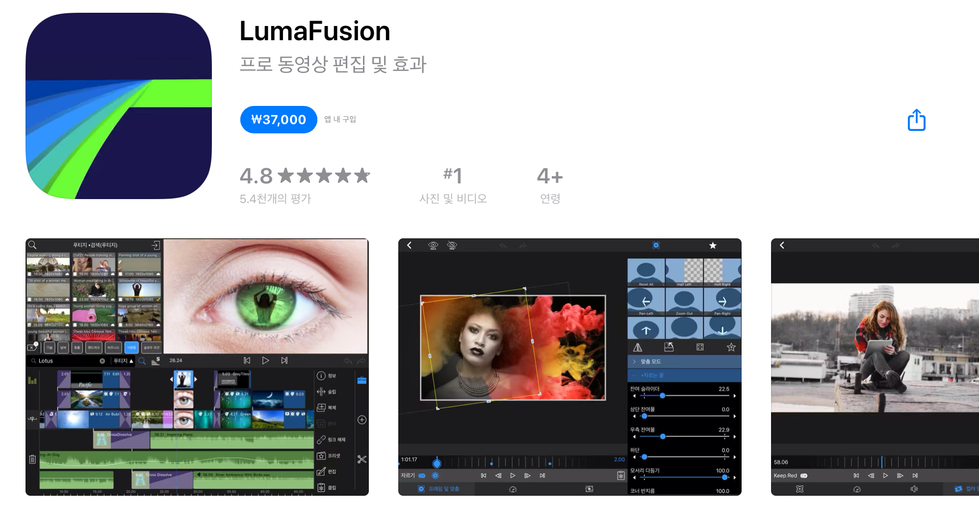 영상편집 프로그램 루마 퓨전의 가격은 37,000원입니다.
