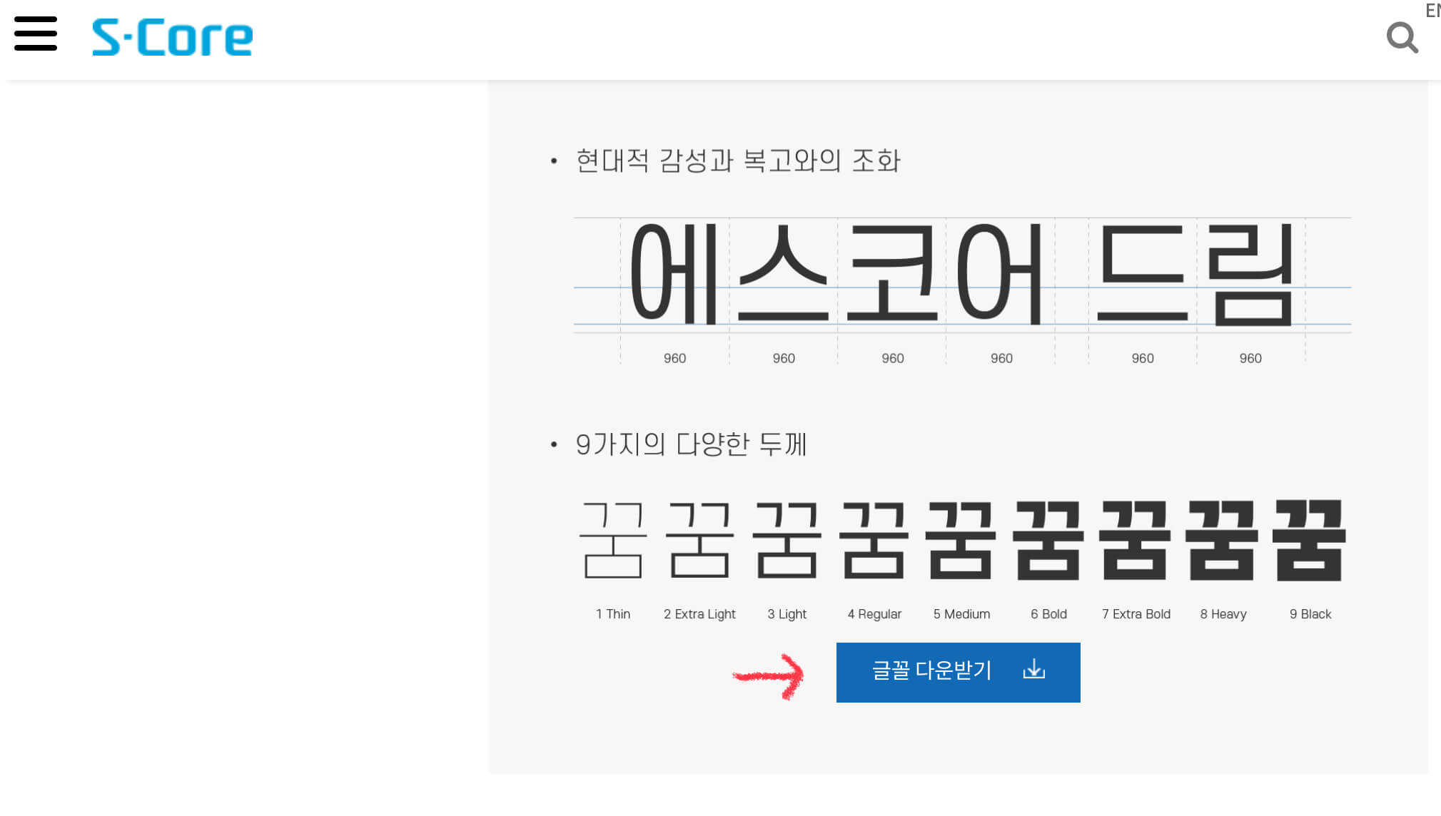 에스코어 드림체가 잘 적용되어 있는 걸 확인할 수 있습니다.