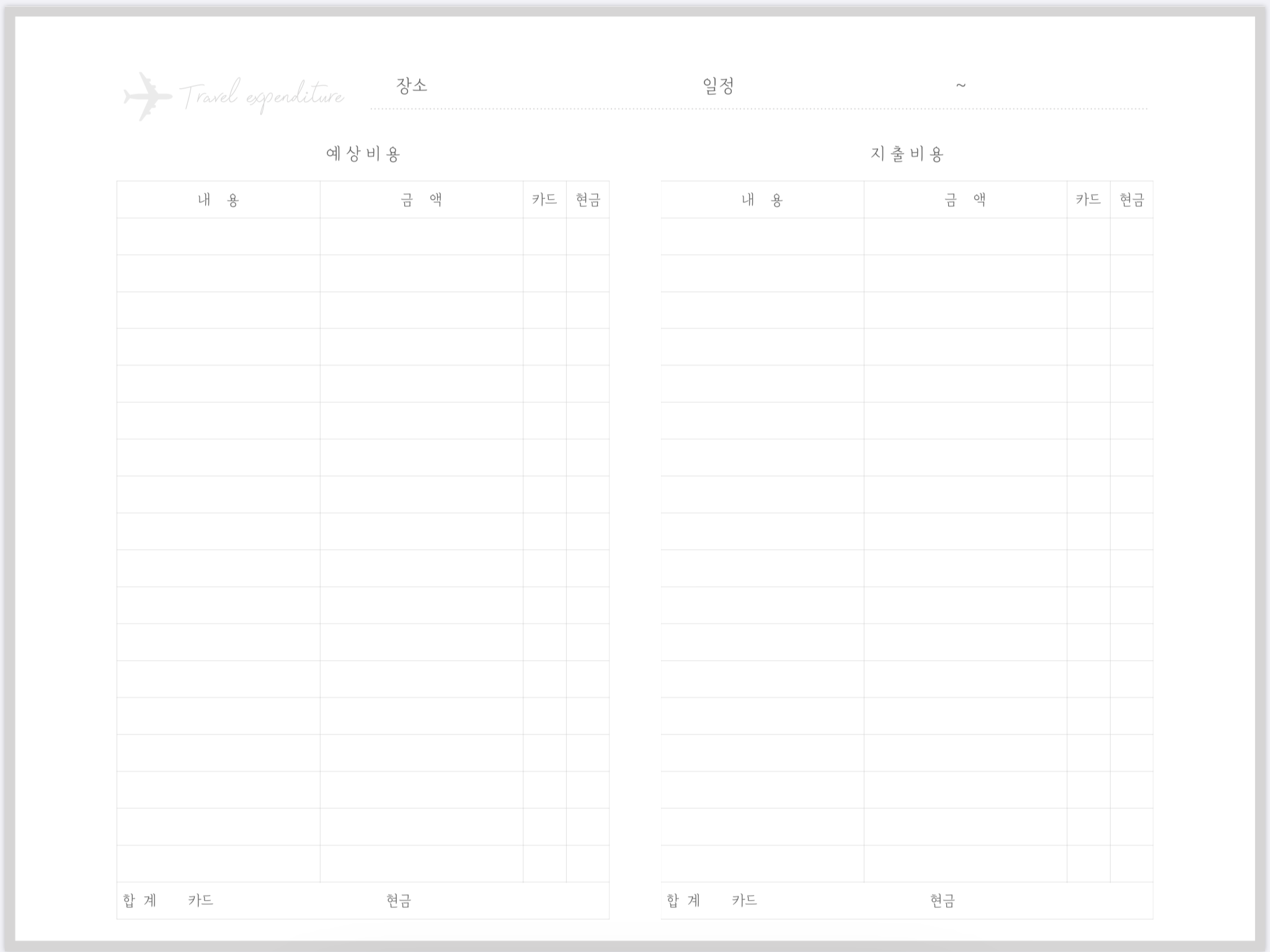 안녕하세요. 오늘은 굿노트에서 사용할 수 있는 [여행 경비 지출 가계부] 서식을 가지고 왔습니다. 얼른 코로나가 사라지고 자유롭게 여행할 수 있는 날이 오길 바랍니다.