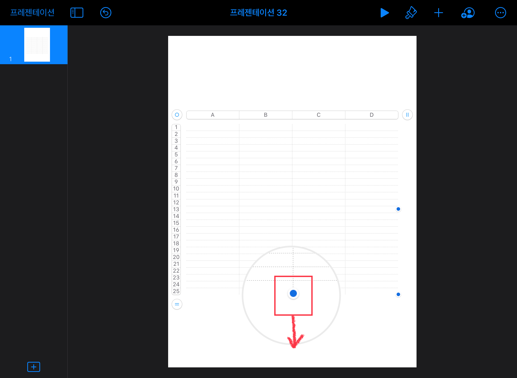 표의 크기를 넓혀주고 싶다면, 표를 선택한 뒤 파란색 점을 이용해서 크기를 늘려주세요.