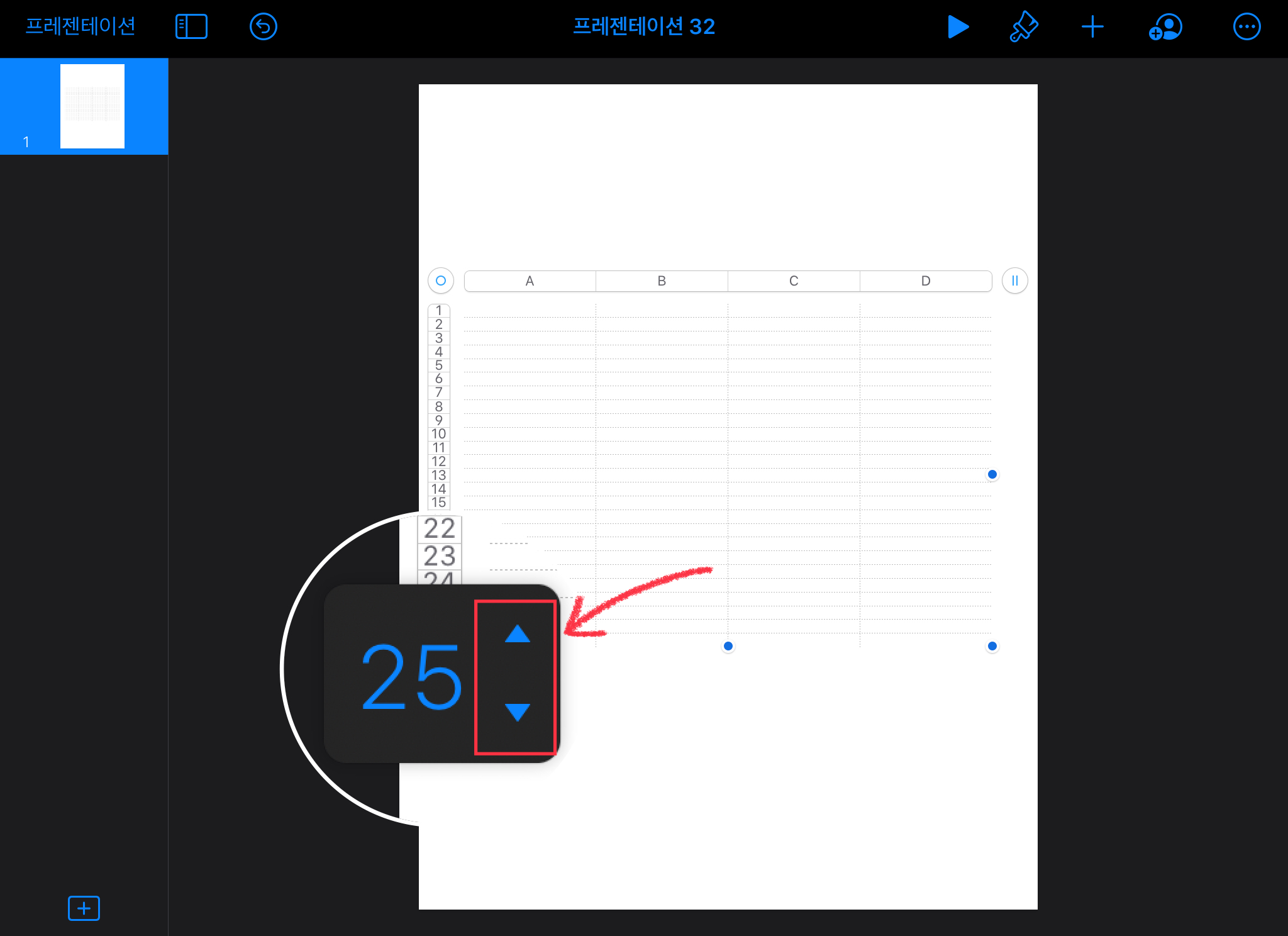 숫자를 높여주면 표의 크기는 그대로 있는 상태로 칸이 늘어나게 됩니다.