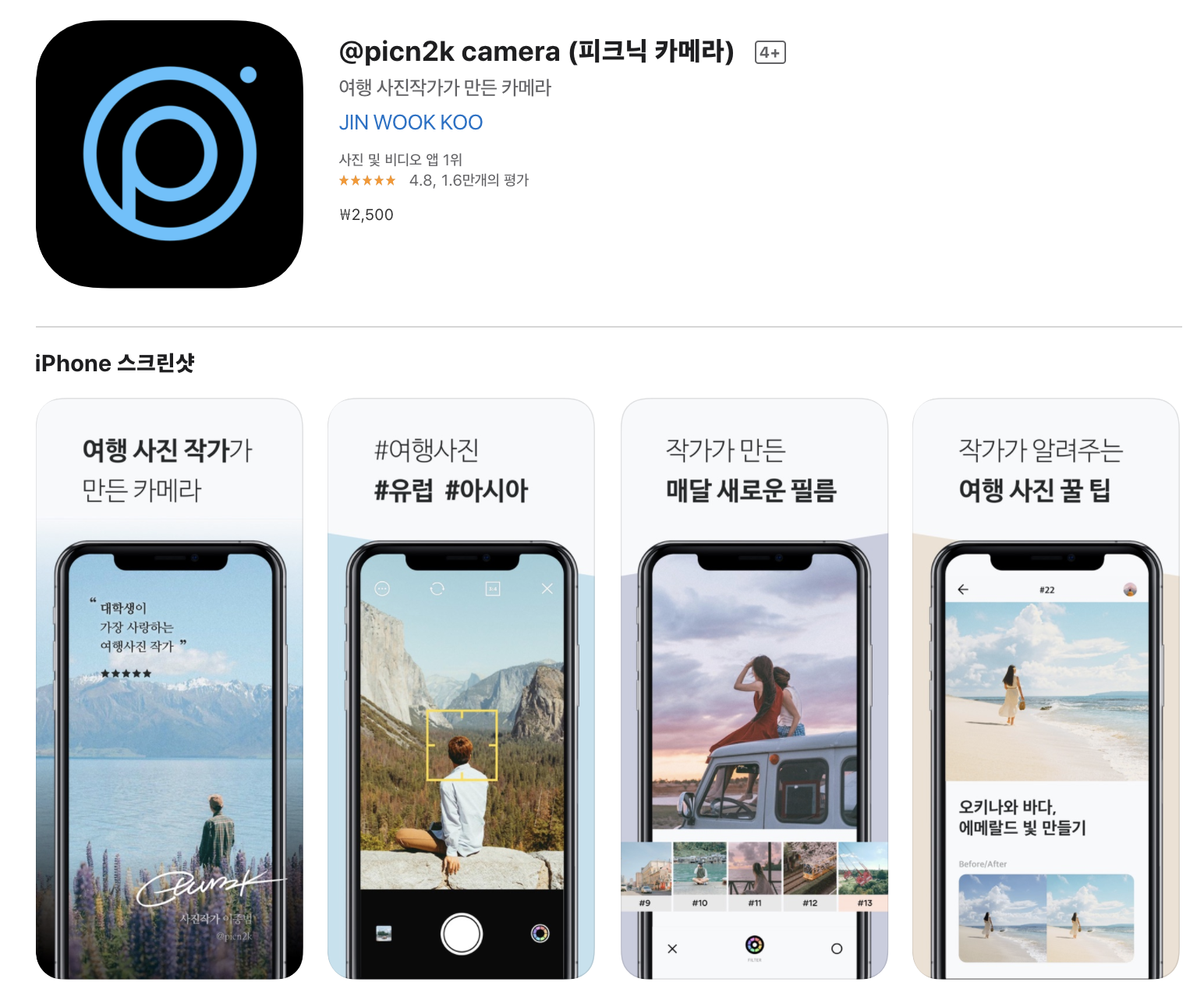 피크닉 카메라(@picn2 k)는 앱스토어 App Store에서 유료로 판매하고 있는 사진 보정 어플입니다. 피크닉 카메라의 가격은 2,500원 입니다.