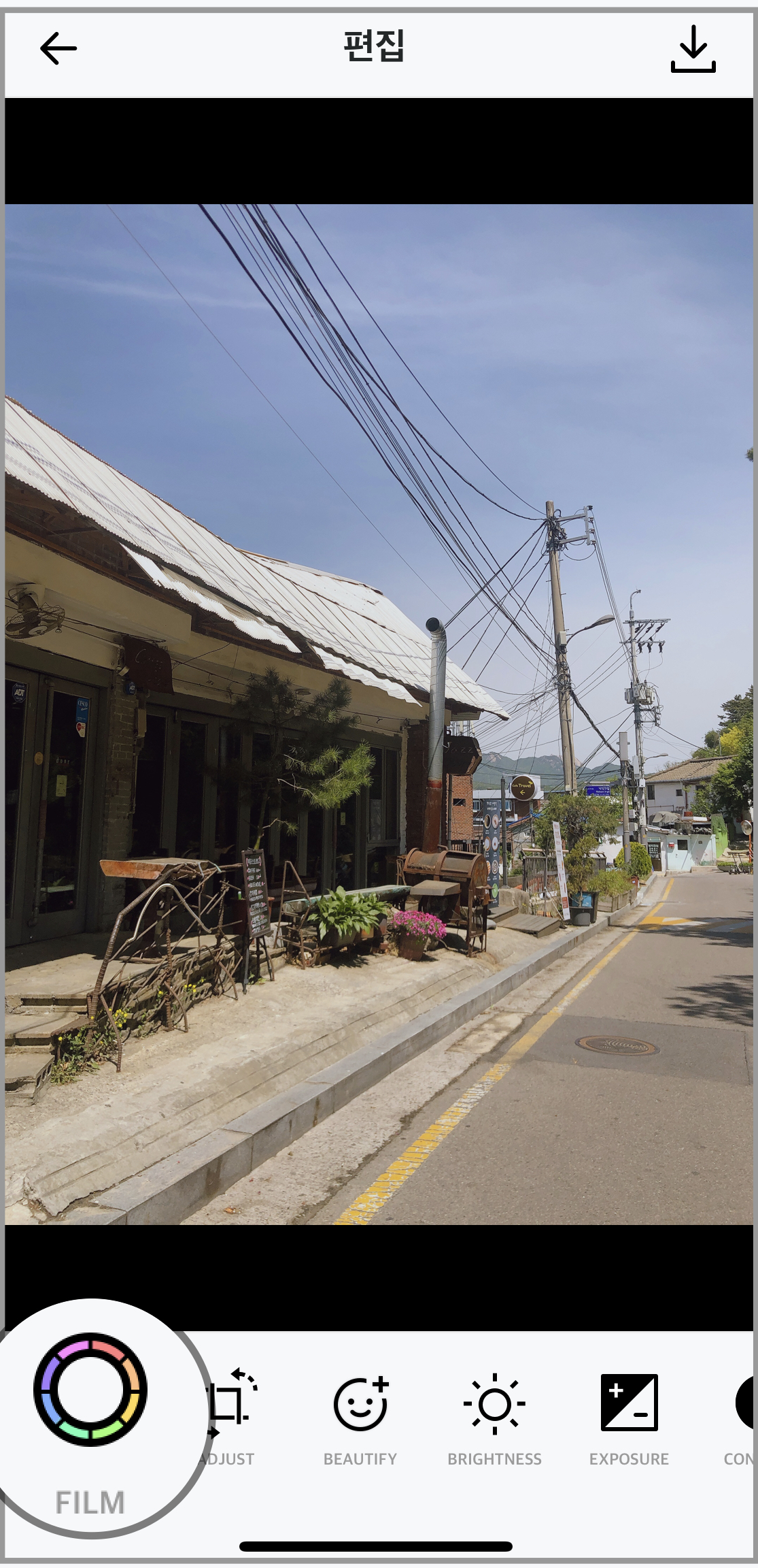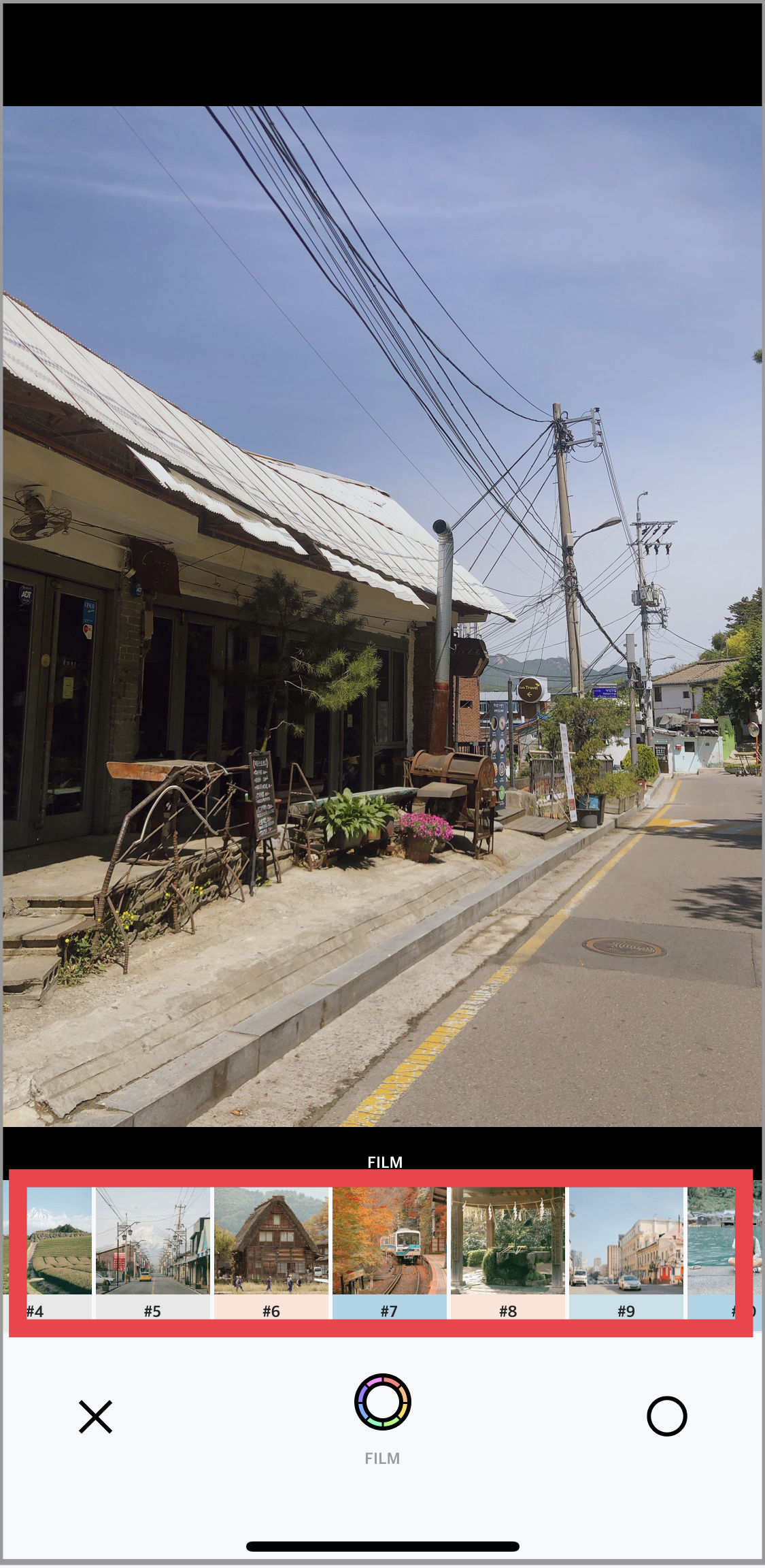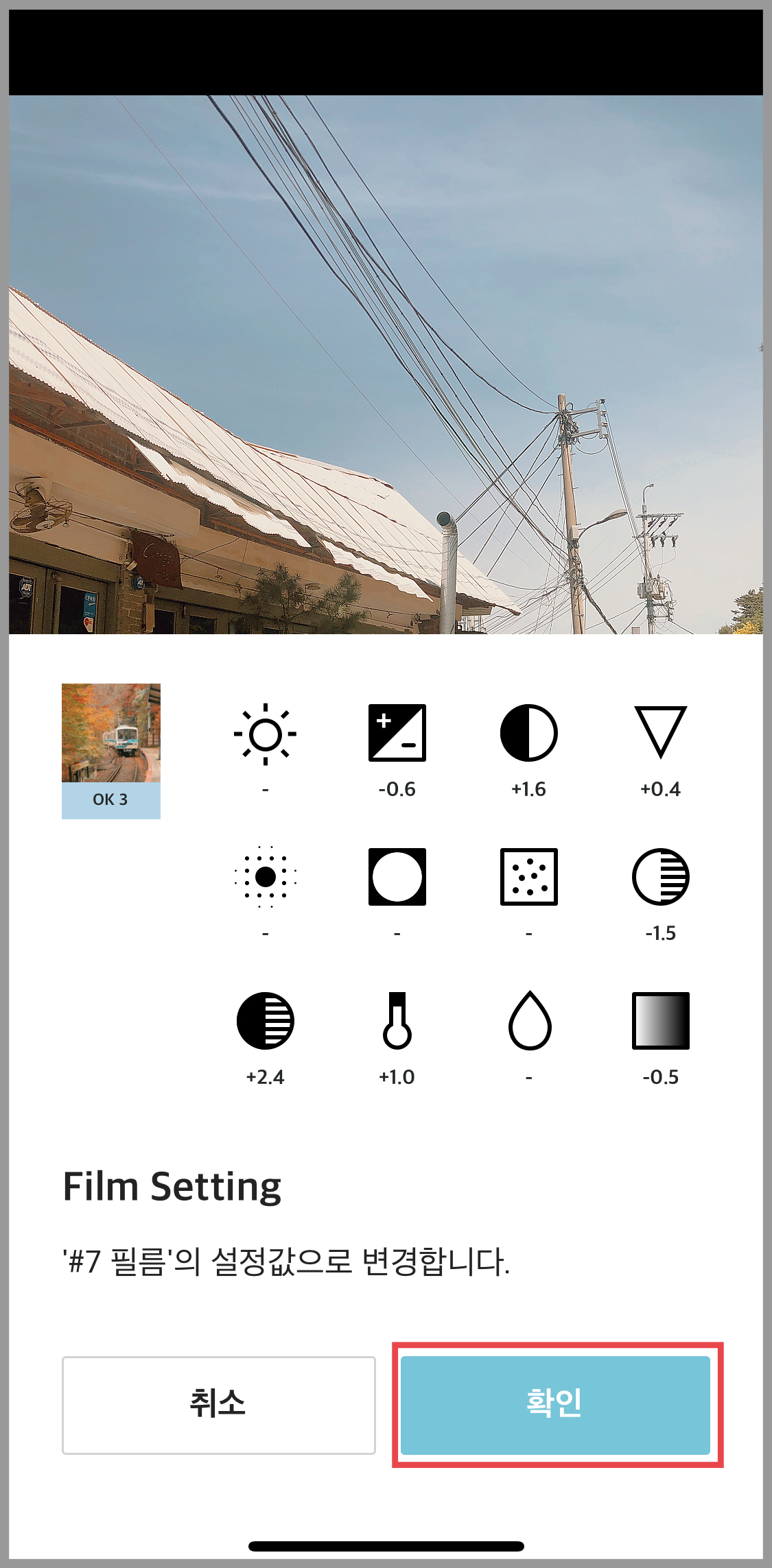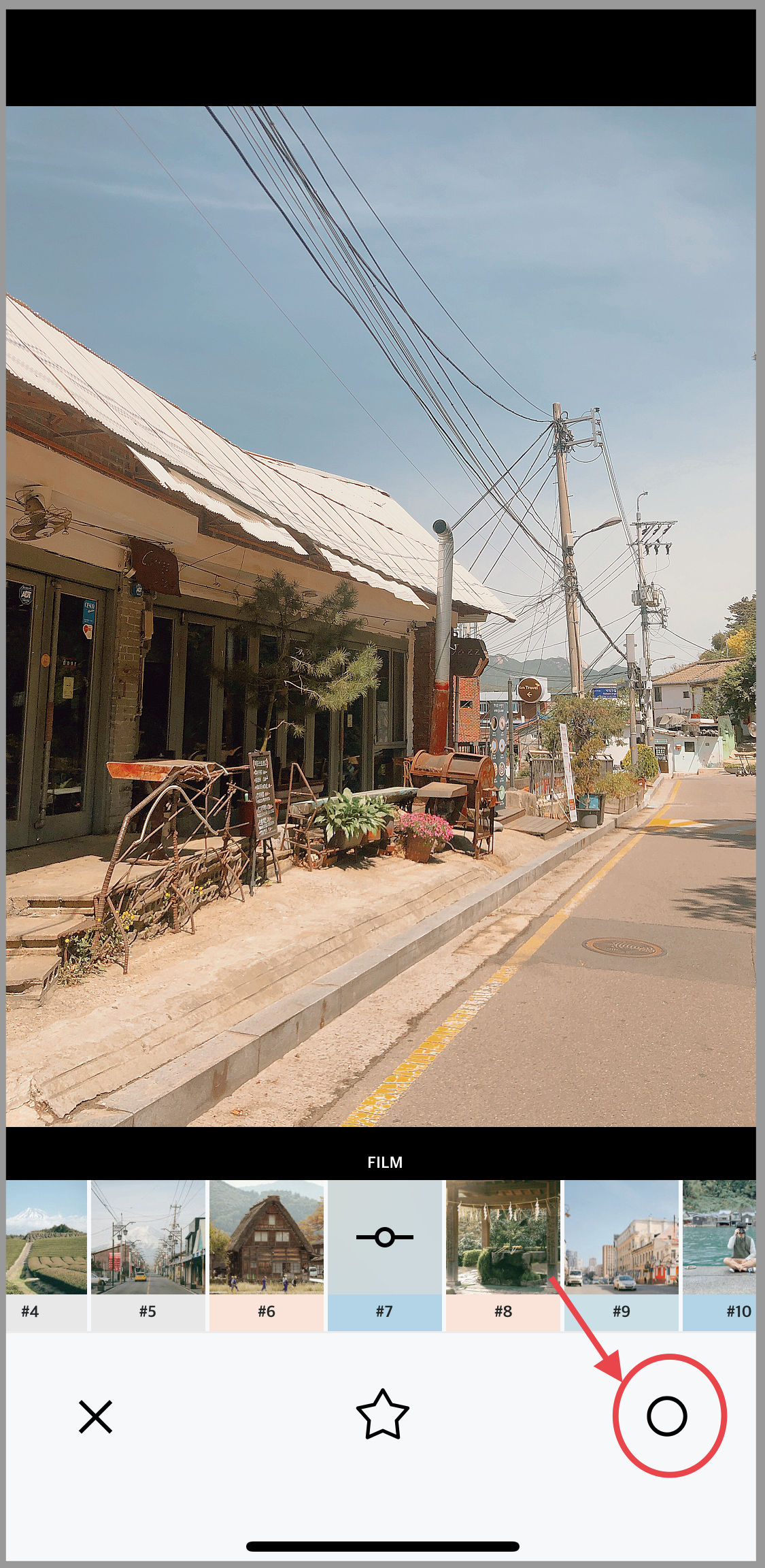 저는 #7 필터를 적용해보았습니다. 필터 값을 저장하기 위해서 오른쪽 하단의 동그라미 버튼을 눌러줍니다. (필터 값 상세 조정도 가능하지만, 바로 사용해도 예쁘더라고요.)
