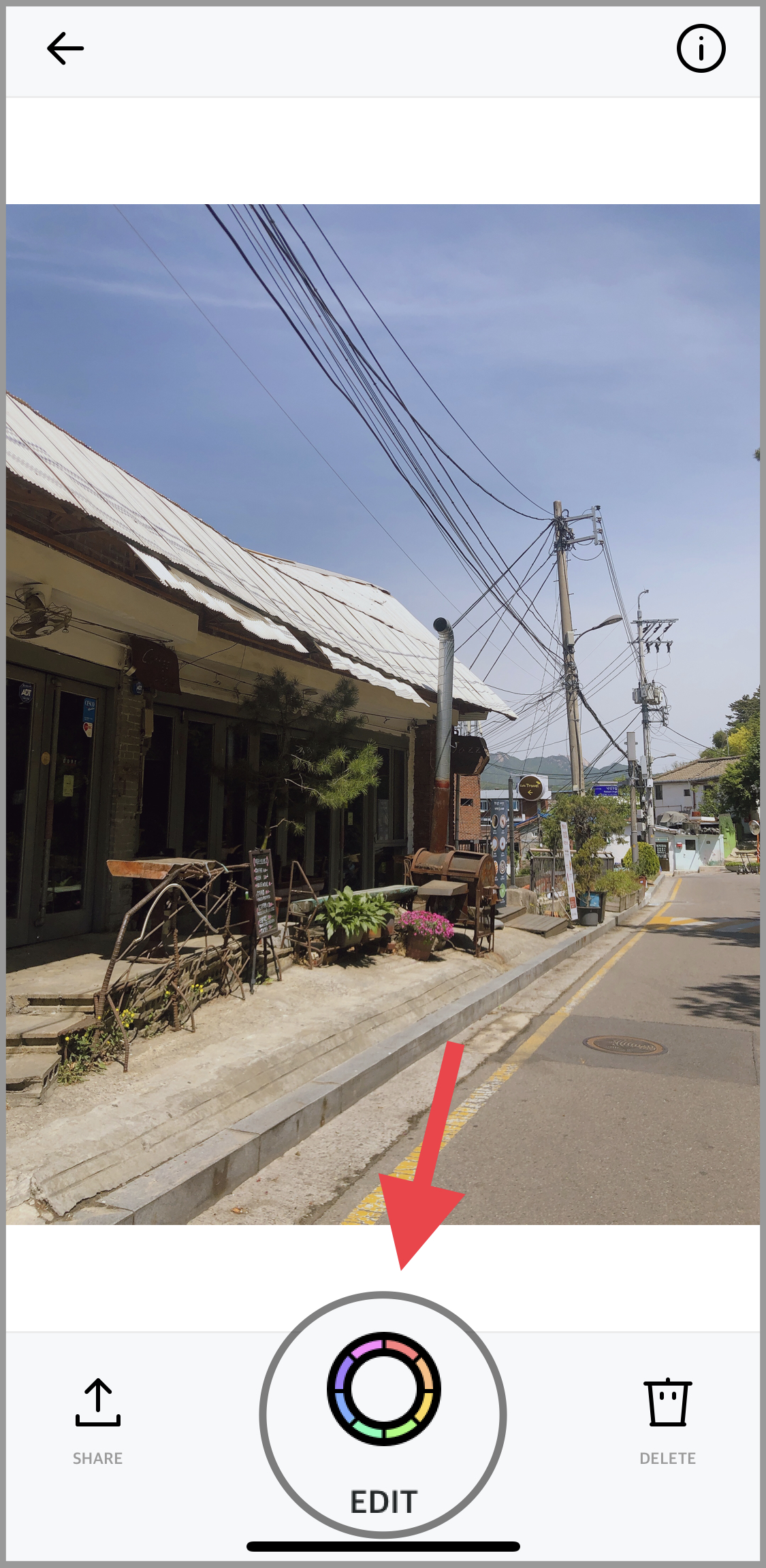 오른쪽 아래에 있는 [앨범] 버튼을 눌러 보정할 사진을 선택합니다. 아이폰 X로 촬영한 원본입니다.