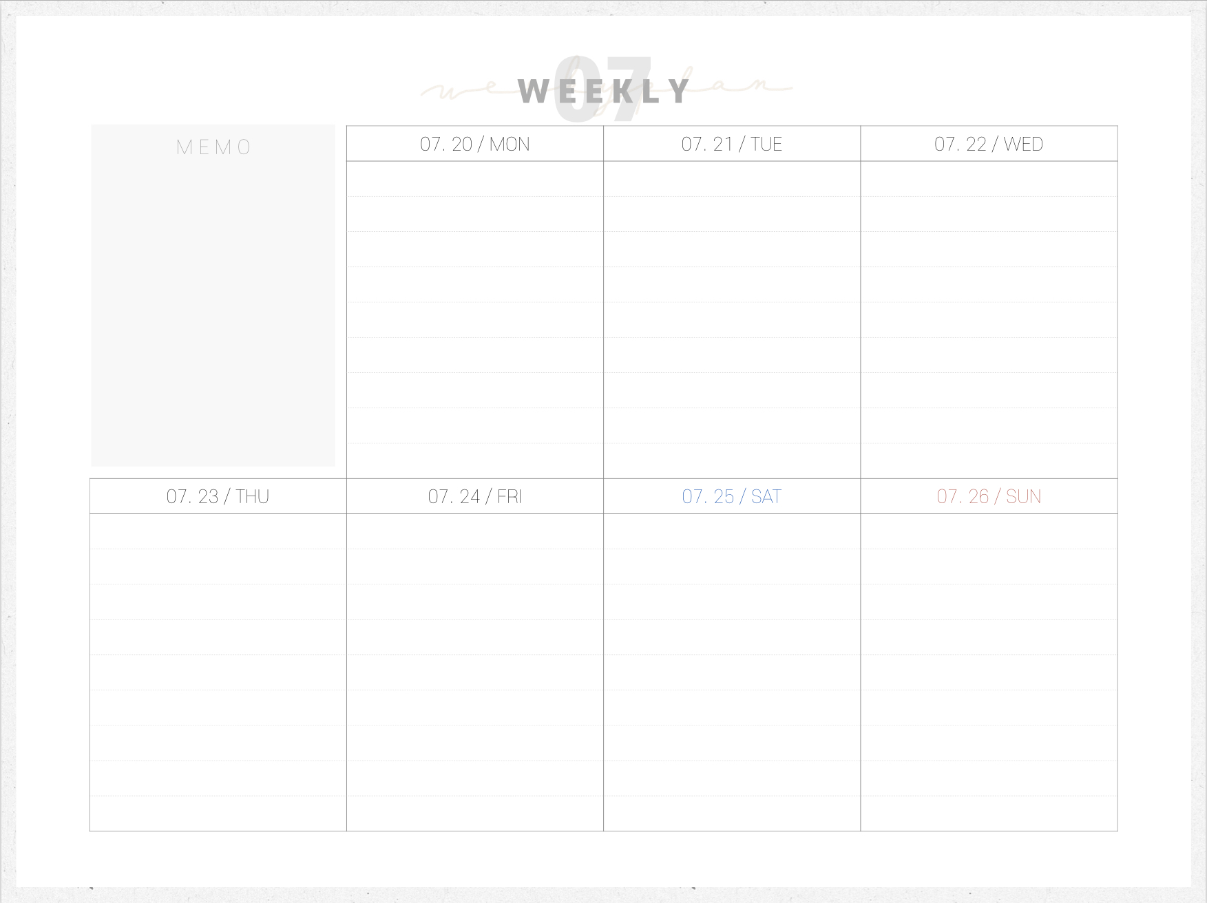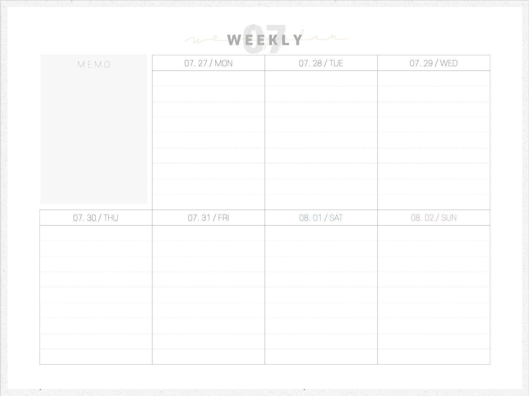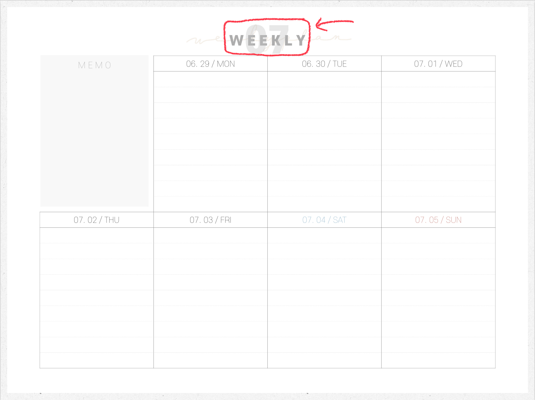 위클리에 있는 상단 07을 하이퍼링크로 누르면 월간 먼슬리로 돌아갑니다.