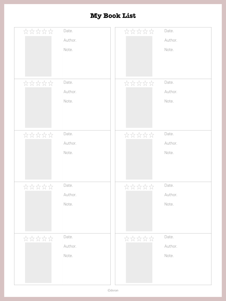 안녕하세요. 오늘은 굿노트 독서노트 서식 4종을 만들어 왔습니다. 읽은 책들의 사진을 넣고, 읽은 기간과 작가, 그리고 간단한 노트를 할 수 있는 서식입니다.