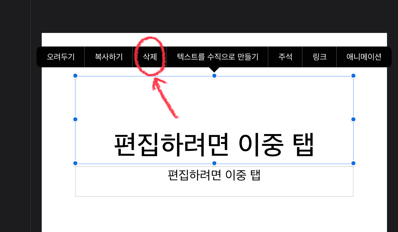 그러면 아래와 같은 화면이 뜨게 됩니다. 기본적으로 적혀있는 두 개의 네모칸을 이중 탭을 하여 [삭제]해줍니다.