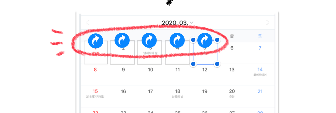 저는 급히 손글씨로 글씨를 적고 네이버 달력 화면을 캡쳐 해왔습니다.