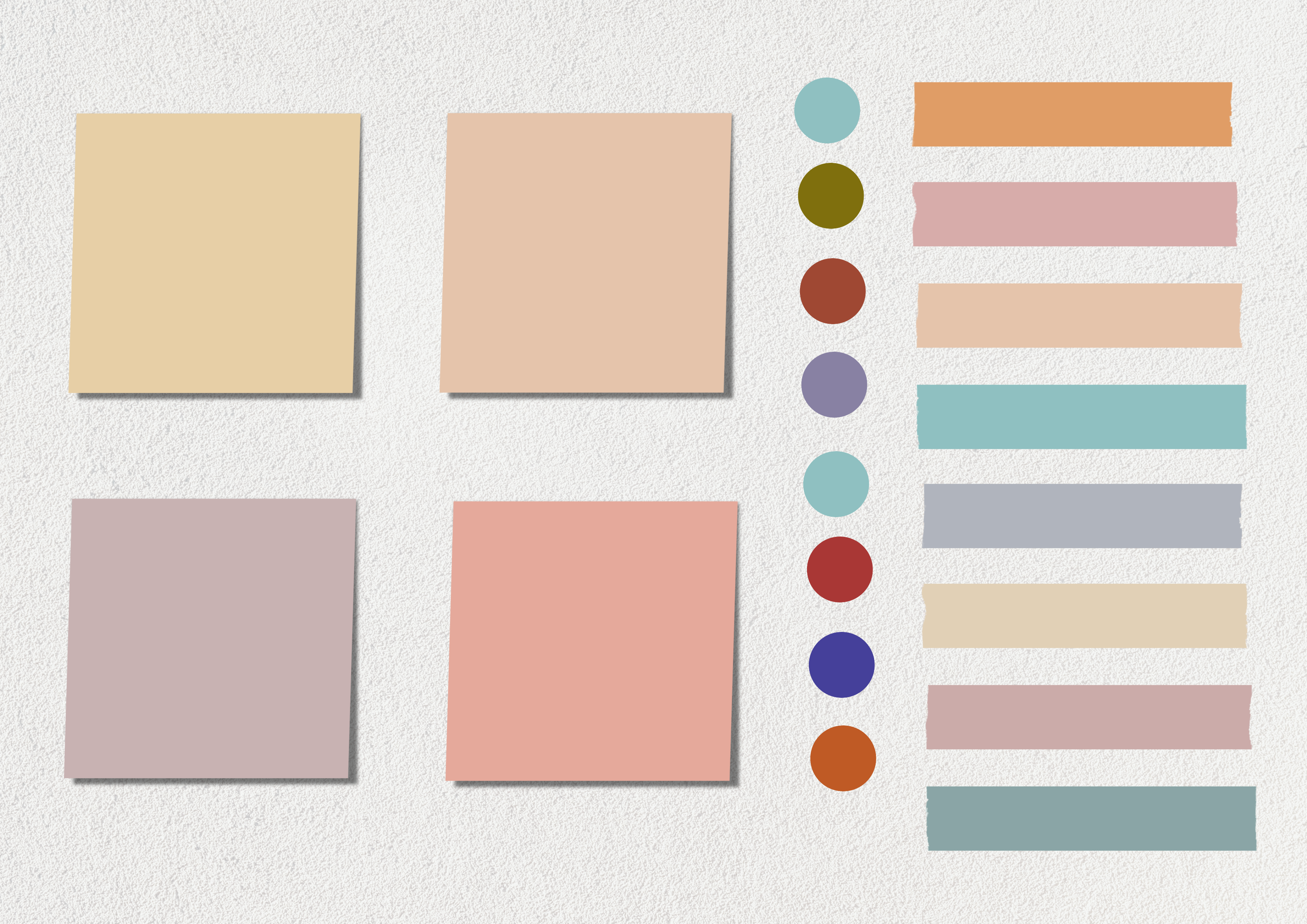 색상은 파스텔톤이라고 적었지만 사실 많이 칙칙(?)한 색상들입니다. 제가 어둑 칙칙한 색상을 좋아하다 보니 만드는 스티커도 이렇네요 ㅎㅎ대신 원형 스티커는 포스트잇 위에 붙이면 좋을 것 같아서 비교적 선명한 색상들로 만들었습니다.