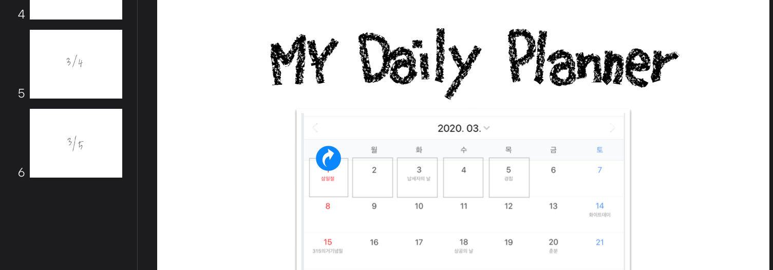 저는 1년치 다이어리 서식을 만드는 게 아닌, 1개월 데일리 플래너로 이동하게 만들어 줄 예정이기 때문에 3월 달력을 가지고 왔습니다.
