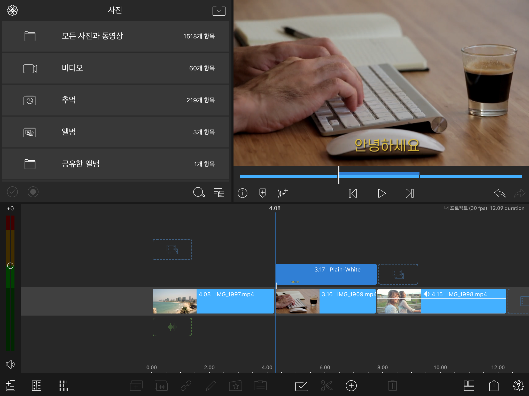 루마퓨전의 다중 선택 기능으로 영상 편집 환경이 훨씬 좋아진 것 같습니다. :)