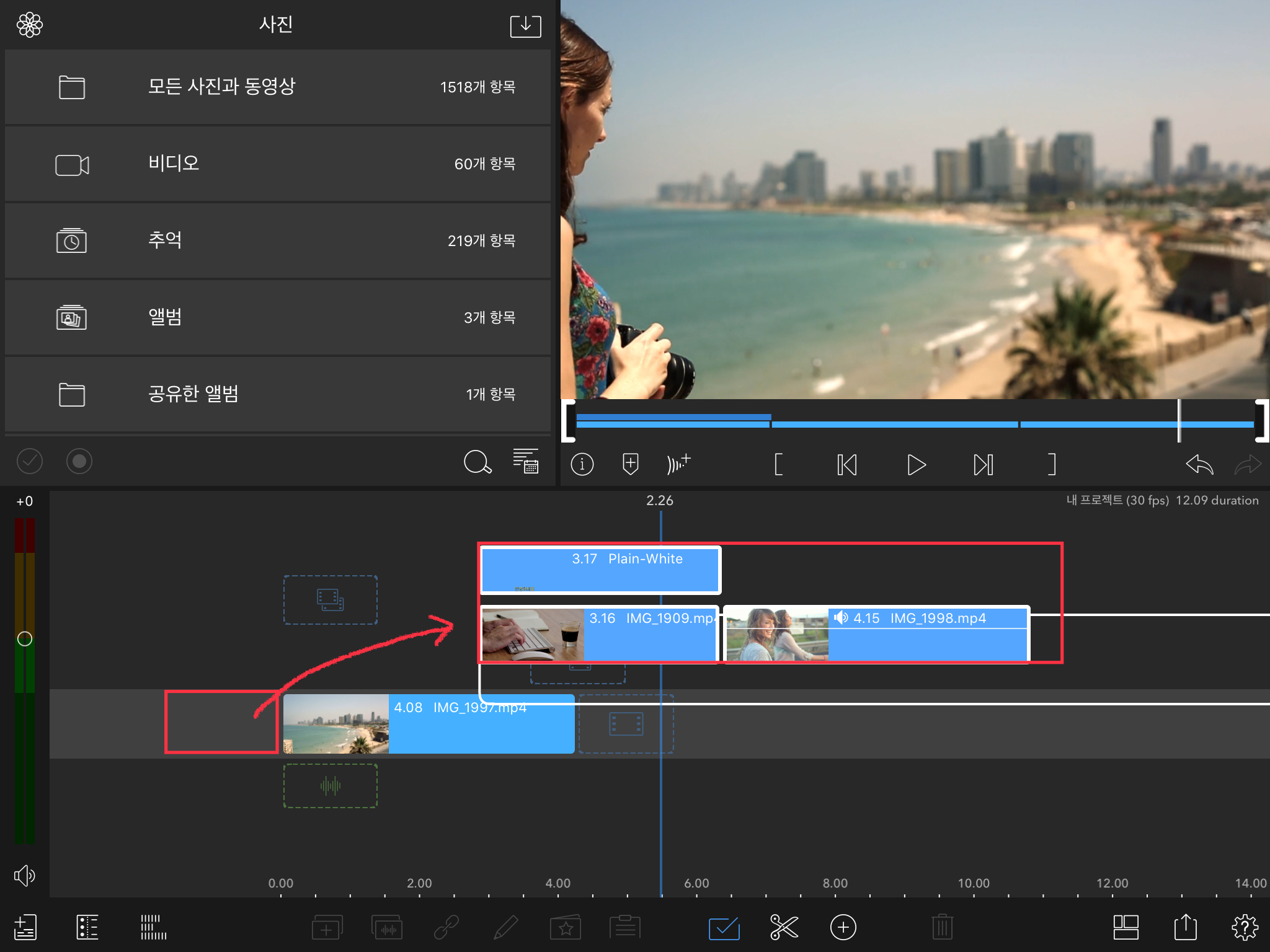 여러개의 클립이 한 번에 이동된 것을 확인할 수 있습니다.