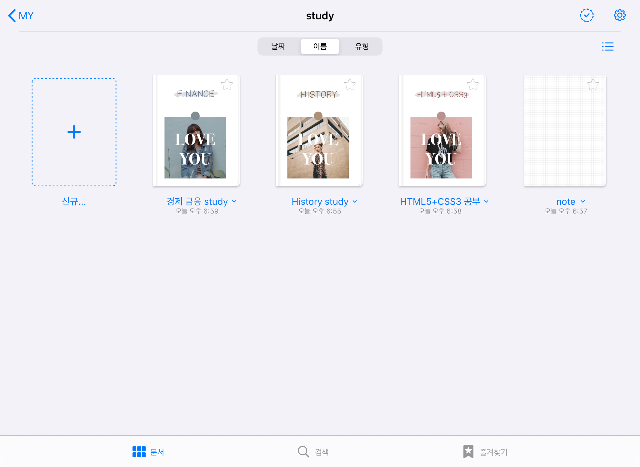 굿노트 1번 페이지에서 상단에 있는 [문서 +] 버튼(페이지 추가)을 누릅니다.