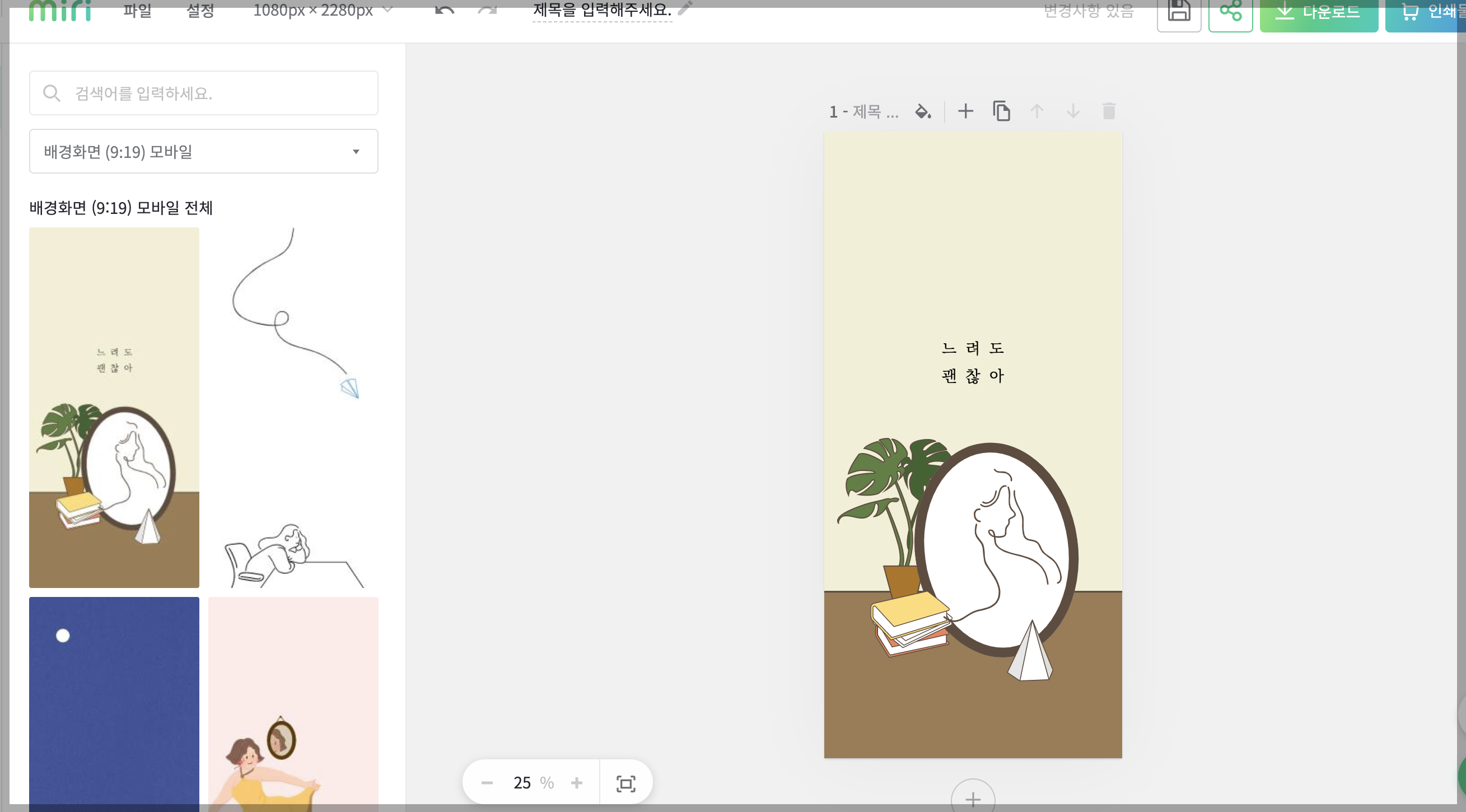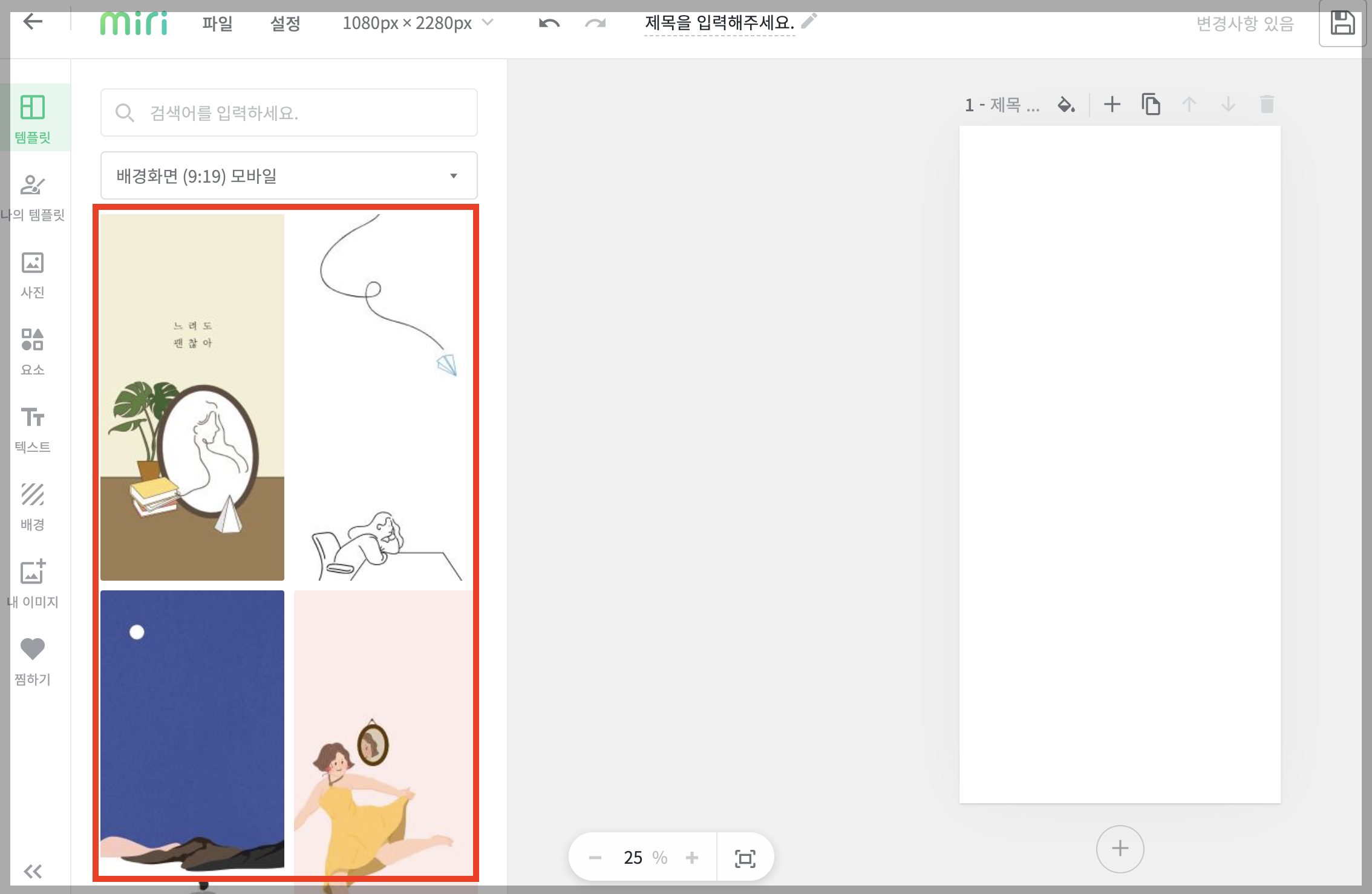 다양한 예쁜 일러스트 배경화면이 나옵니다. 원하는 탬플릿을 선택합니다.