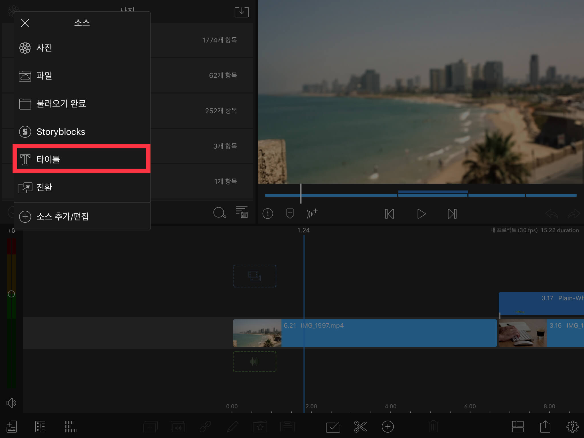아이패드 유료 동영상 편집 프로그램 루마퓨전 LumaFusion에서 자막에 전환 표과 넣는 방법을 알아보겠습니다.
