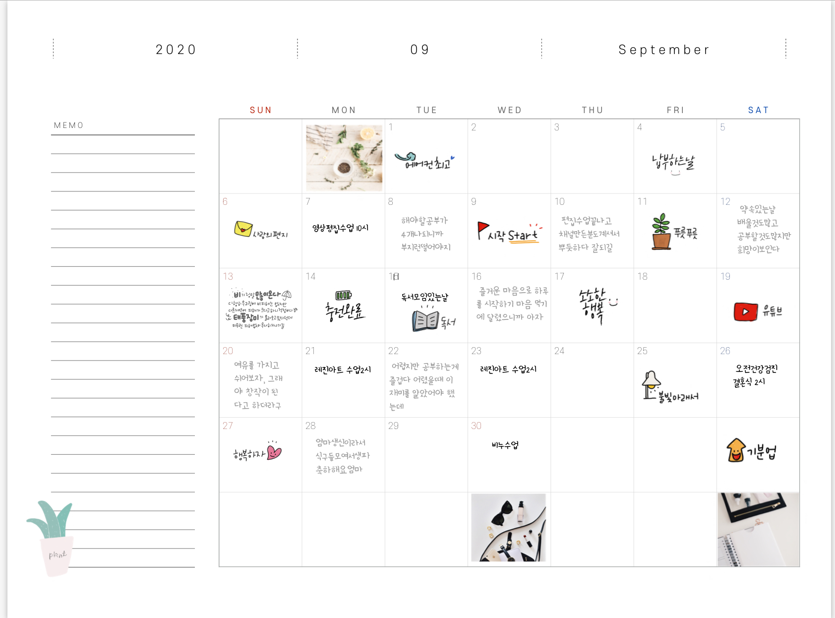9월 숫자를 적어놓았으니, 다운로드한 뒤 바로 사용하면 됩니다. :)