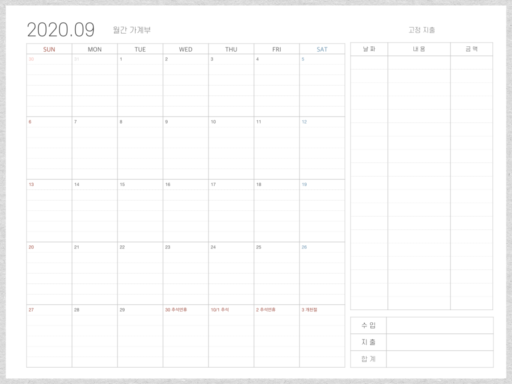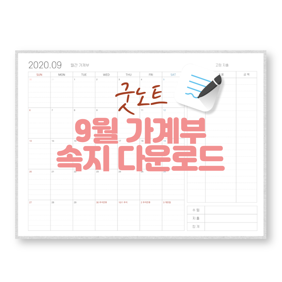 안녕하세요. 오늘은 굿노트 9월 가계부 속지를 가지고 왔습니다 :)