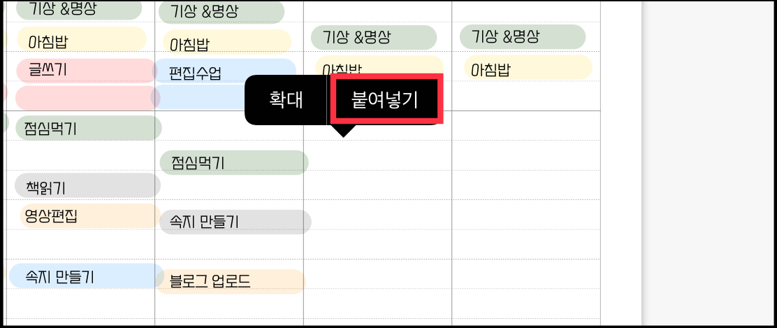 ▼ 굿노트 페이지에 꾹 누르고 있으면 아래와 같이 [확대 / 붙여넣기] 메뉴가 나옵니다. 여기서 [붙여넣기]를 눌러주세요.