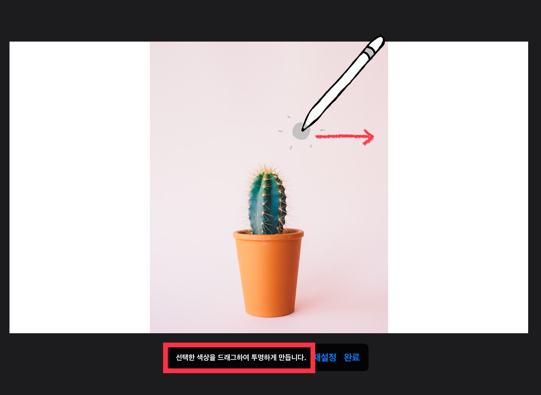 ▼ 선택한 색상을 드래그 한 뒤 배경을 투명하게 만듭니다.