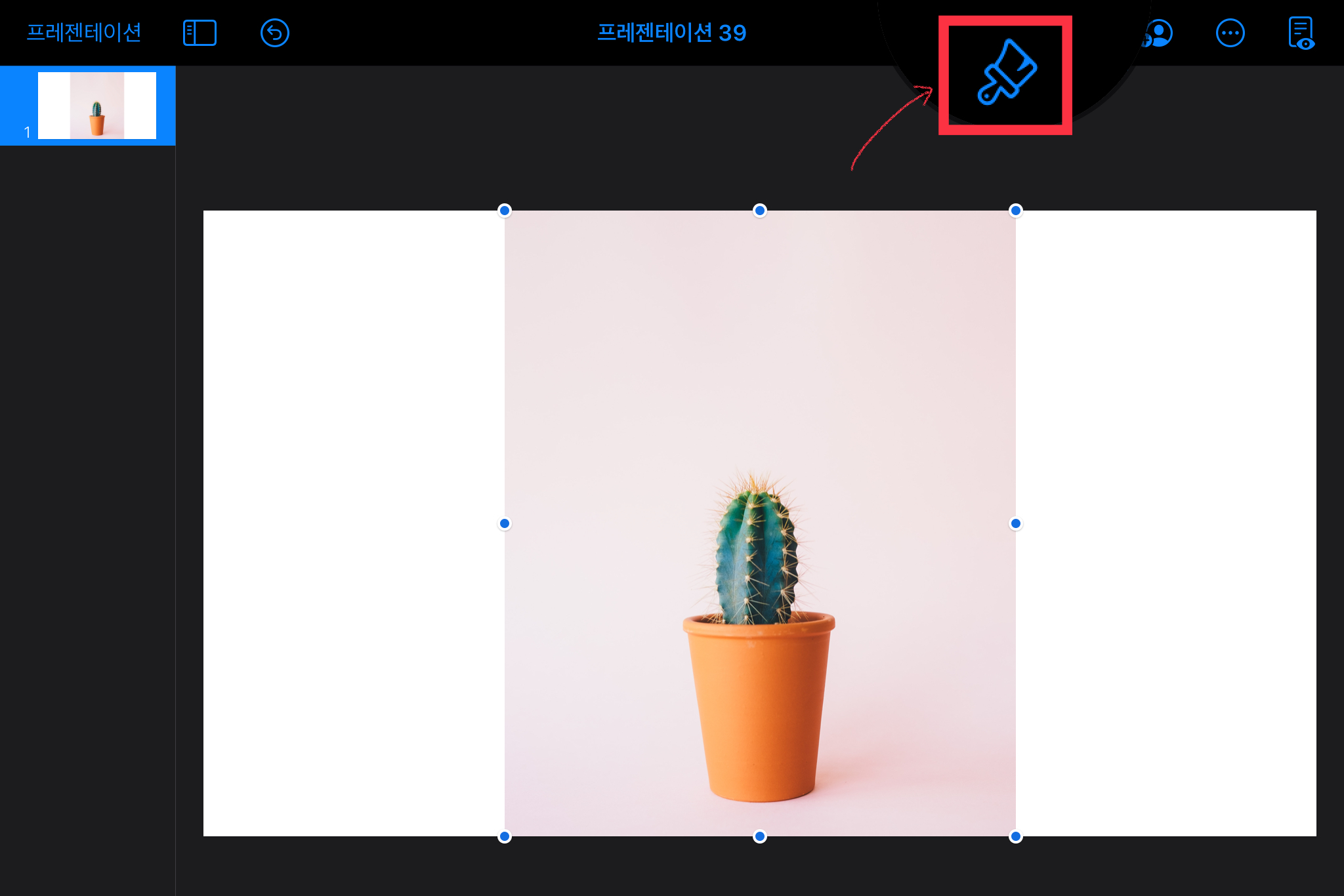 ▼ 이미지를 선택한 뒤, 오른쪽 상단의 [붓] 메뉴를 선택합니다.